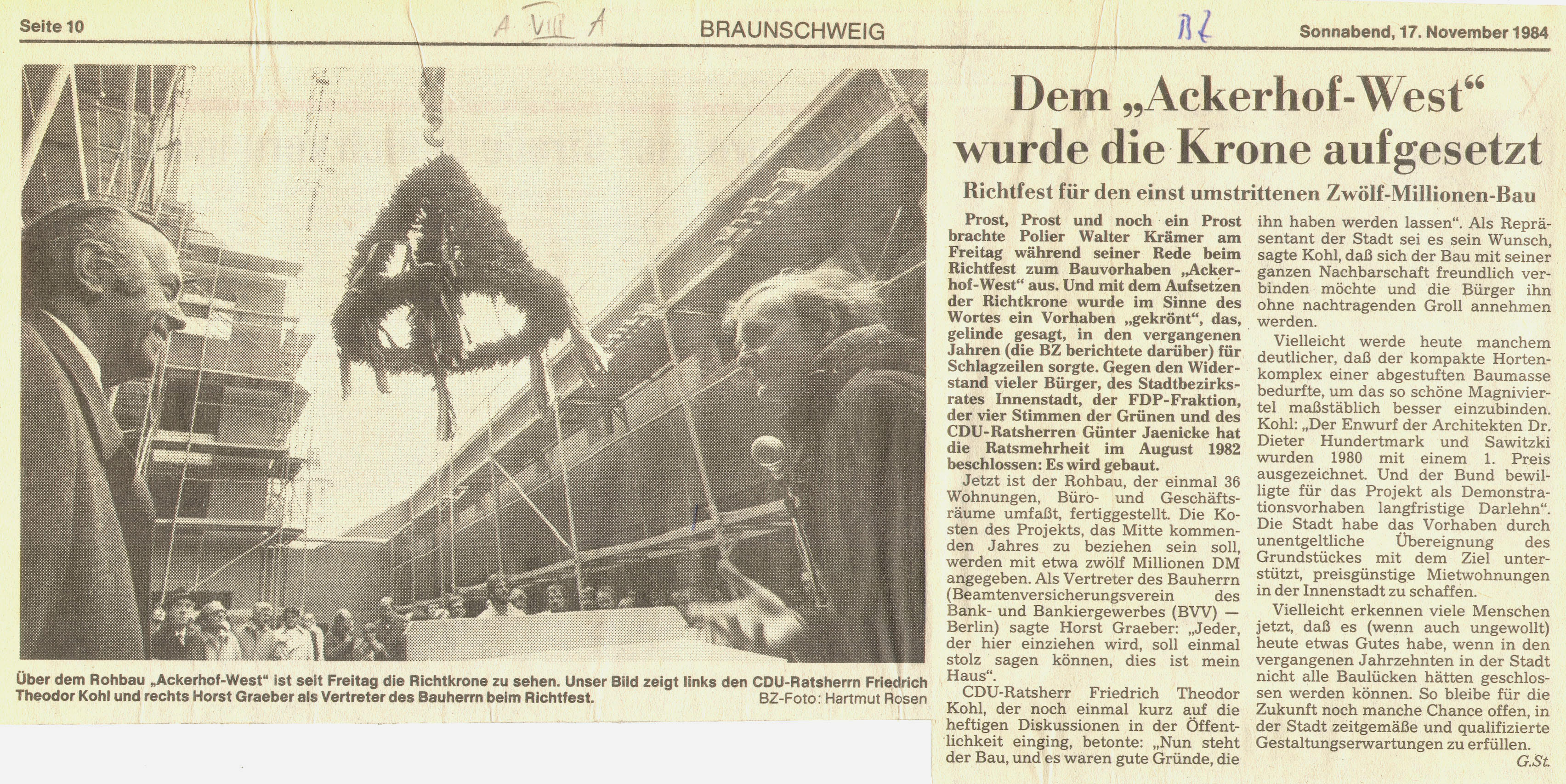 Dem Ackerhof West wurde die Krone aufgesetzt Redaktioneller Beitrag vom 17. Nov. 1984 Originaldatei herunterladen …