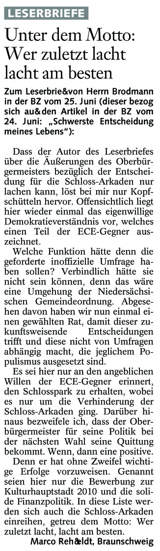 Unter dem Moto: Wer zuletzt lacht, lacht am besten Brief vom 26. Juni 2004 Originaldatei herunterladen …