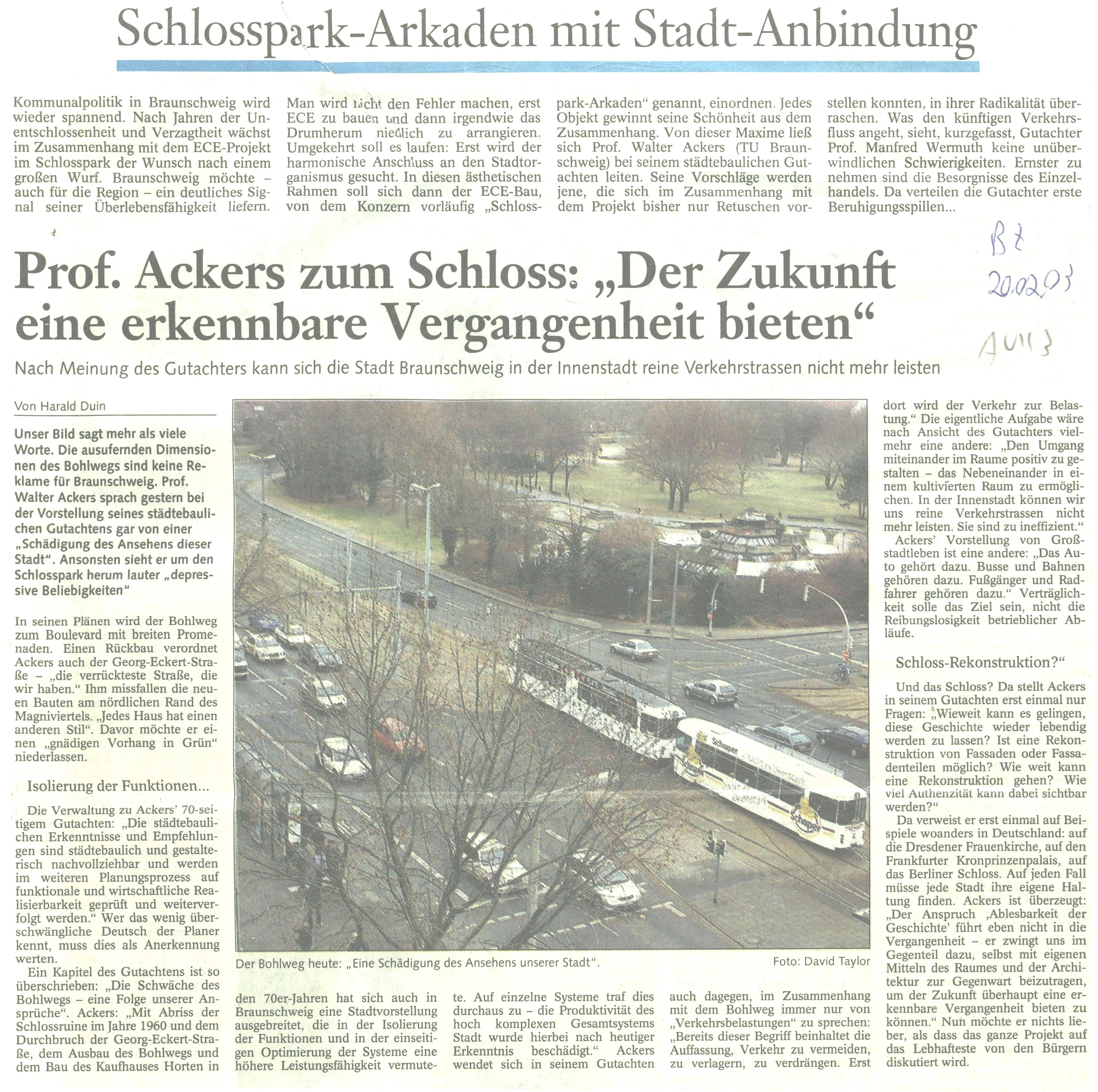 Prof. Ackers zum Schloss: „der Zukunft eine erkennbare Vergangenheit bieten Redaktioneller Beitrag vom 20. Feb. 2003 Originaldatei herunterladen …