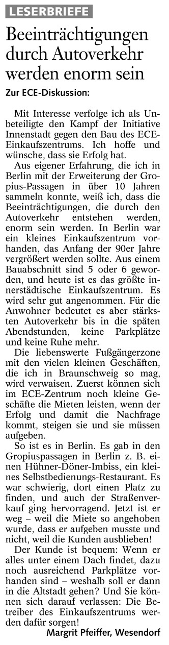 Beeinträchtigungen durch Autoverkehr werden enorm sein Brief vom 25. Nov. 2004 Originaldatei herunterladen …