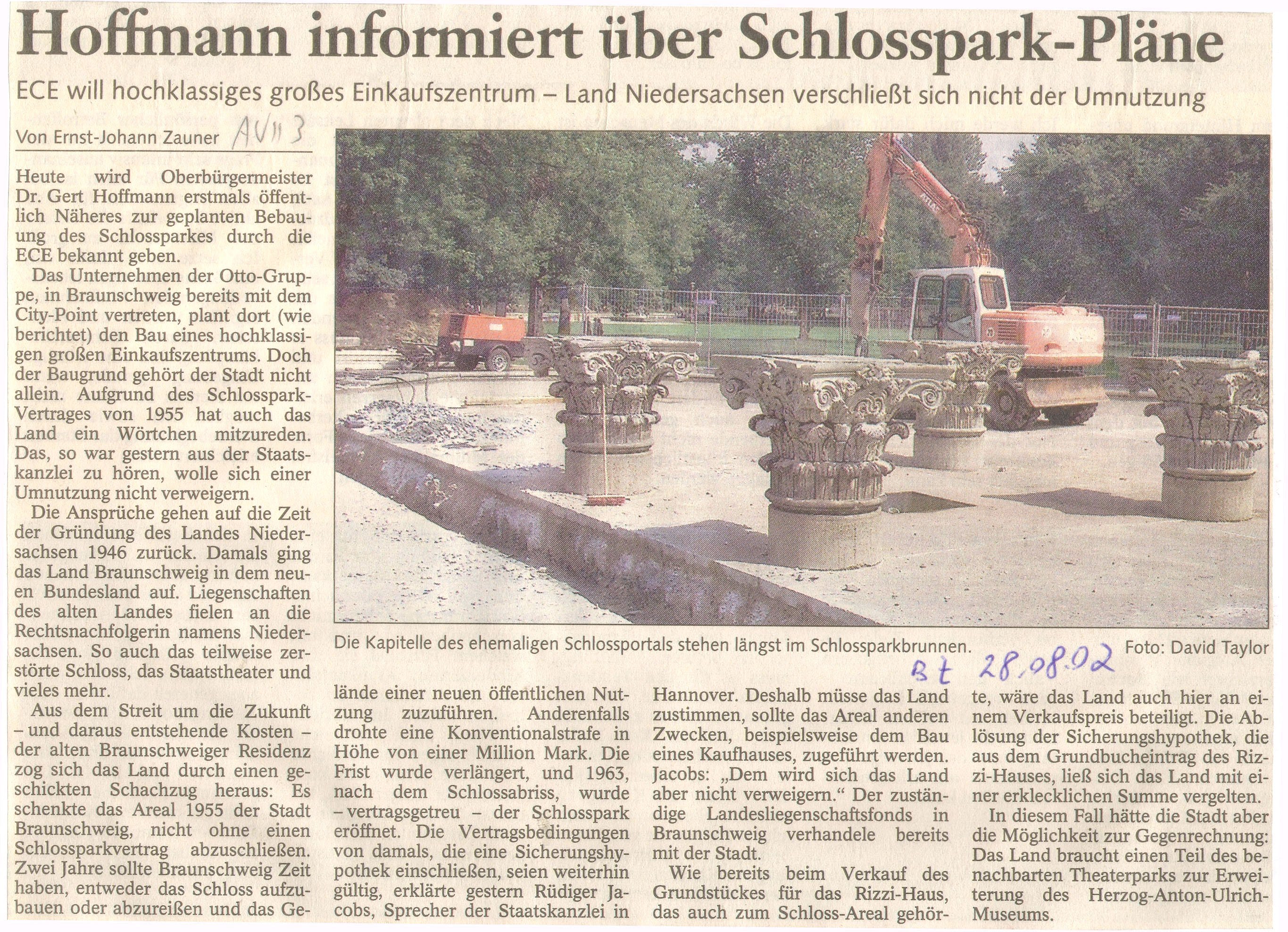 Hoffmann informiert über Schlosspark-Plätze Redaktioneller Beitrag vom 28. Aug. 2002 Originaldatei herunterladen …