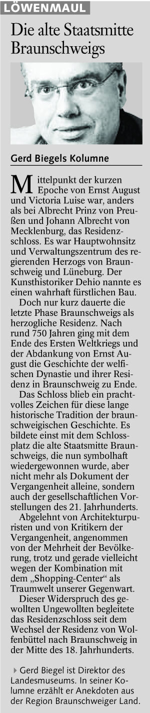 Gerd Biegel Kolumne: Die alte Staatsmitte Braunschweigs Kommentar vom 11. Mai 2007 Originaldatei herunterladen …