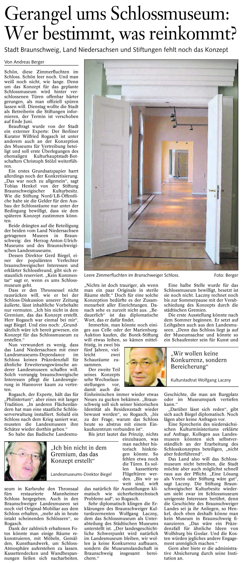 Gerangel ums Schlossmuseum: Wer bestimmt, was reinkommt? Redaktioneller Beitrag vom 31. Mai 2007 Originaldatei herunterladen …