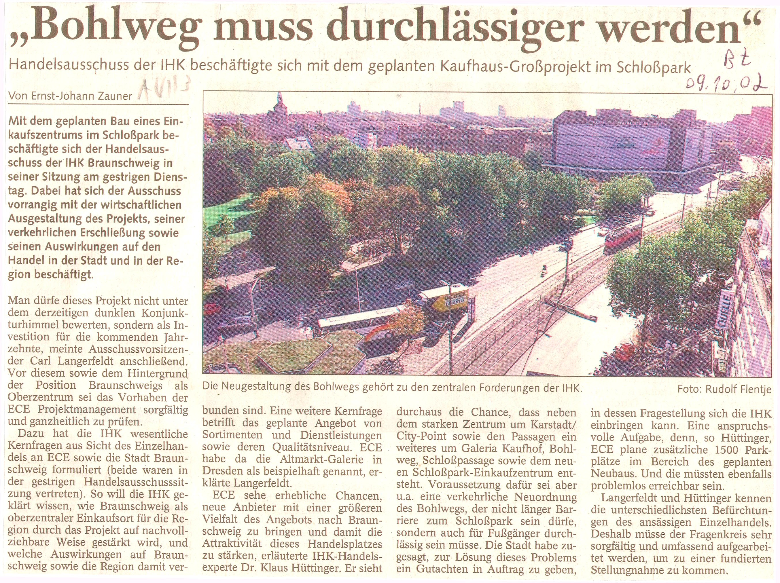 „Bohlweg muss durchlässiger werden“ Redaktioneller Beitrag vom 09. Okt. 2002 Originaldatei herunterladen …