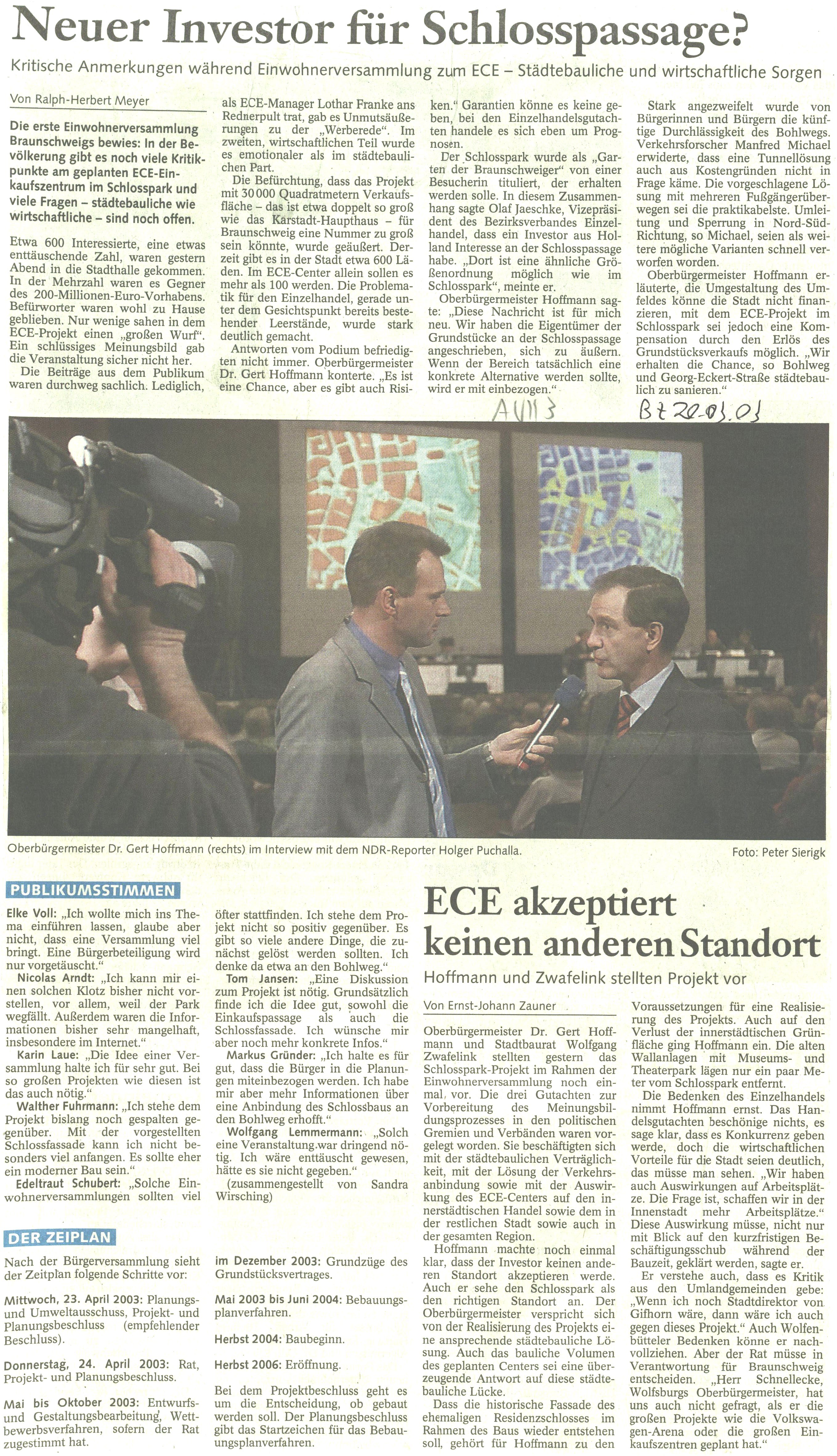 Neuer Investor für Schlosspassage? Und ECE akzeptiert keinen anderen Standort Bild vom 20. März 2003 Originaldatei herunterladen …