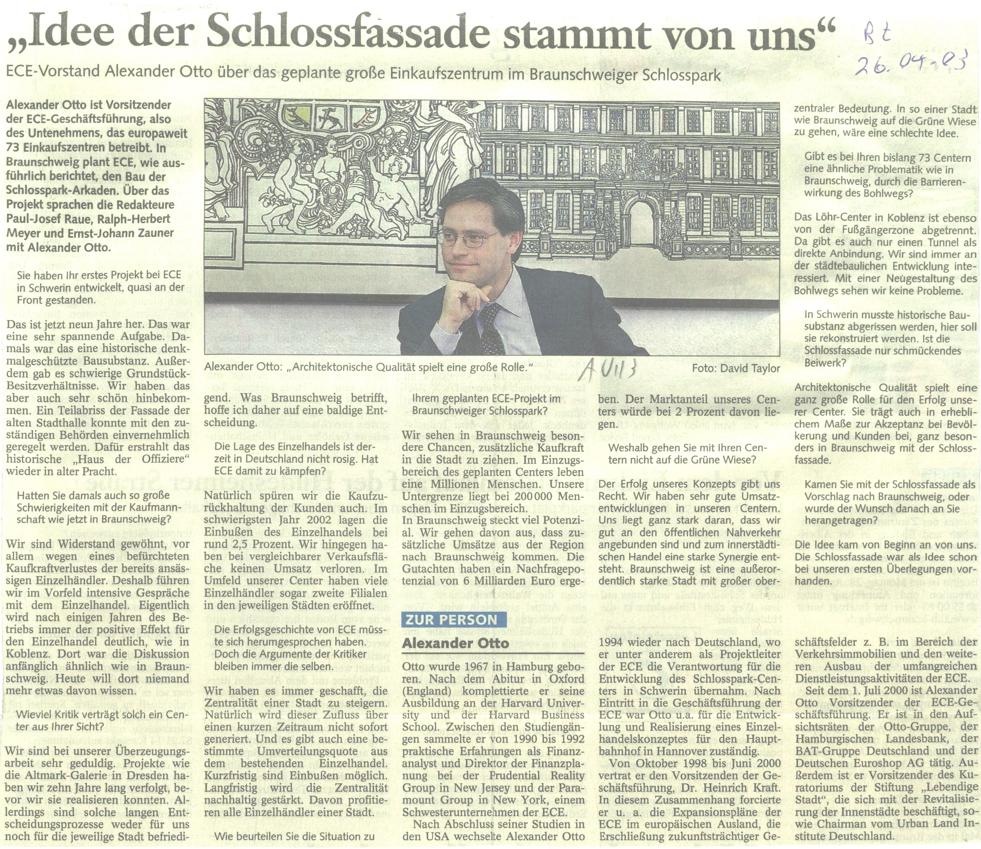 „Idee der Schlossfassade stammt von uns“ Redaktioneller Beitrag vom 26. Apr. 2003 Originaldatei herunterladen …