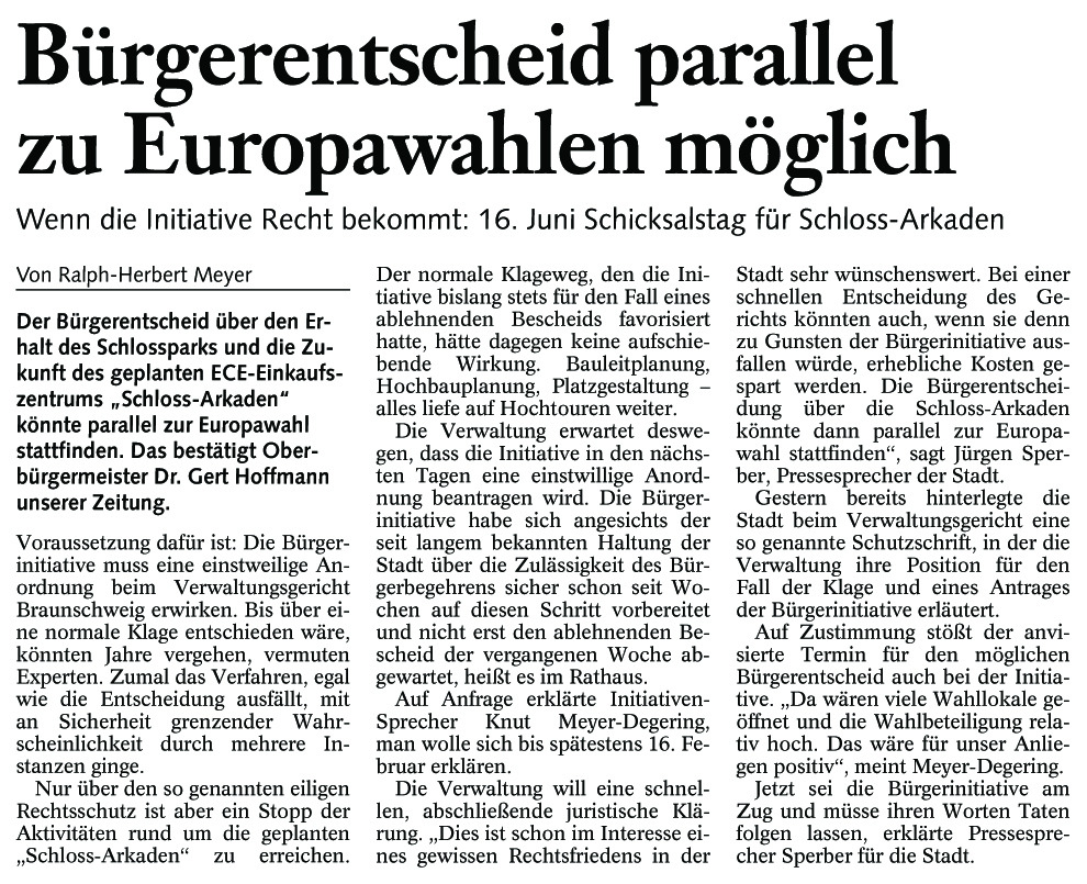 Bürgerentscheid parallel zu Europawahlen möglich Redaktioneller Beitrag vom 03. Feb. 2004 Originaldatei herunterladen …