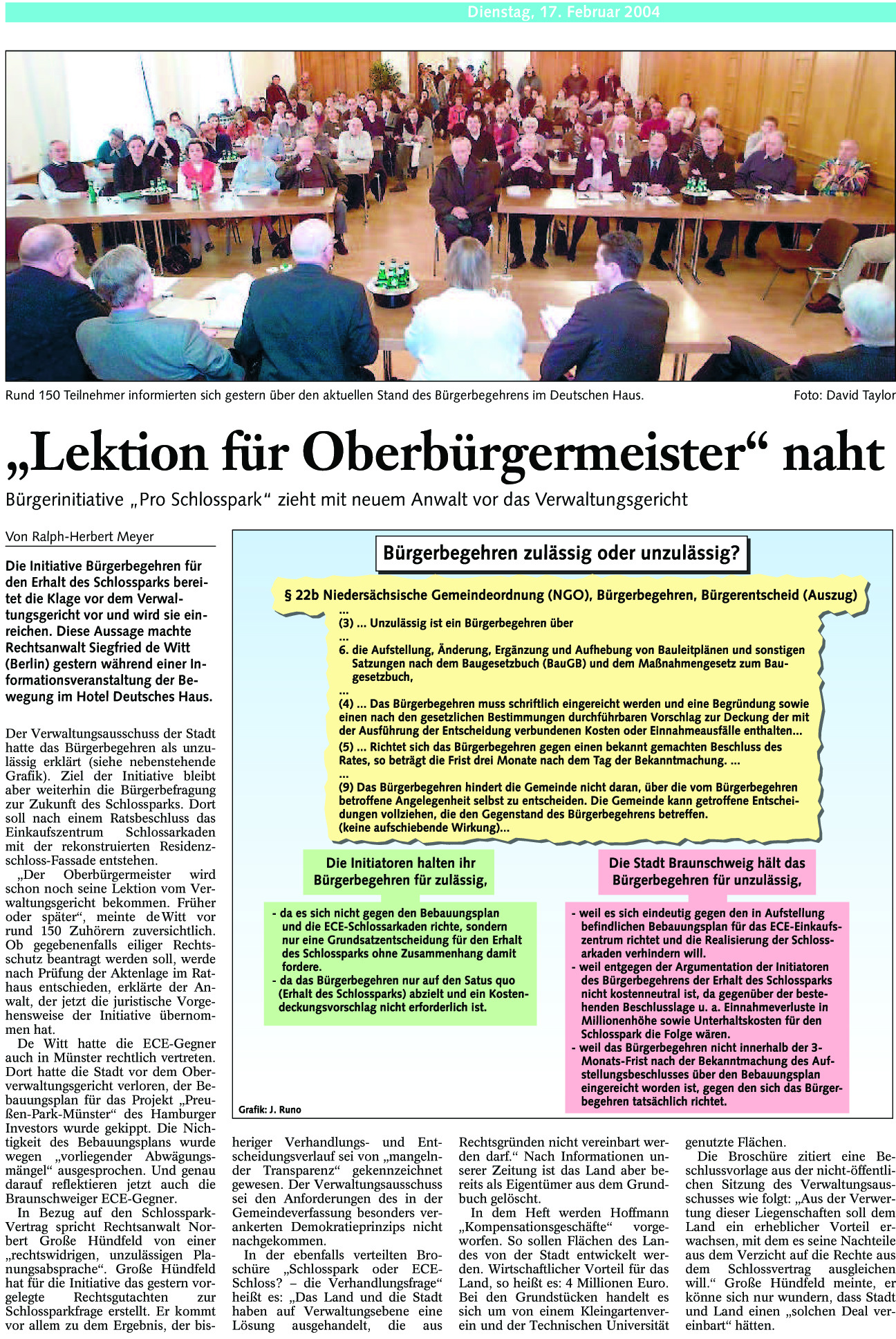 „Lektion für Oberbürgermeister“ naht Redaktioneller Beitrag vom 17. Feb. 2004 Originaldatei herunterladen …