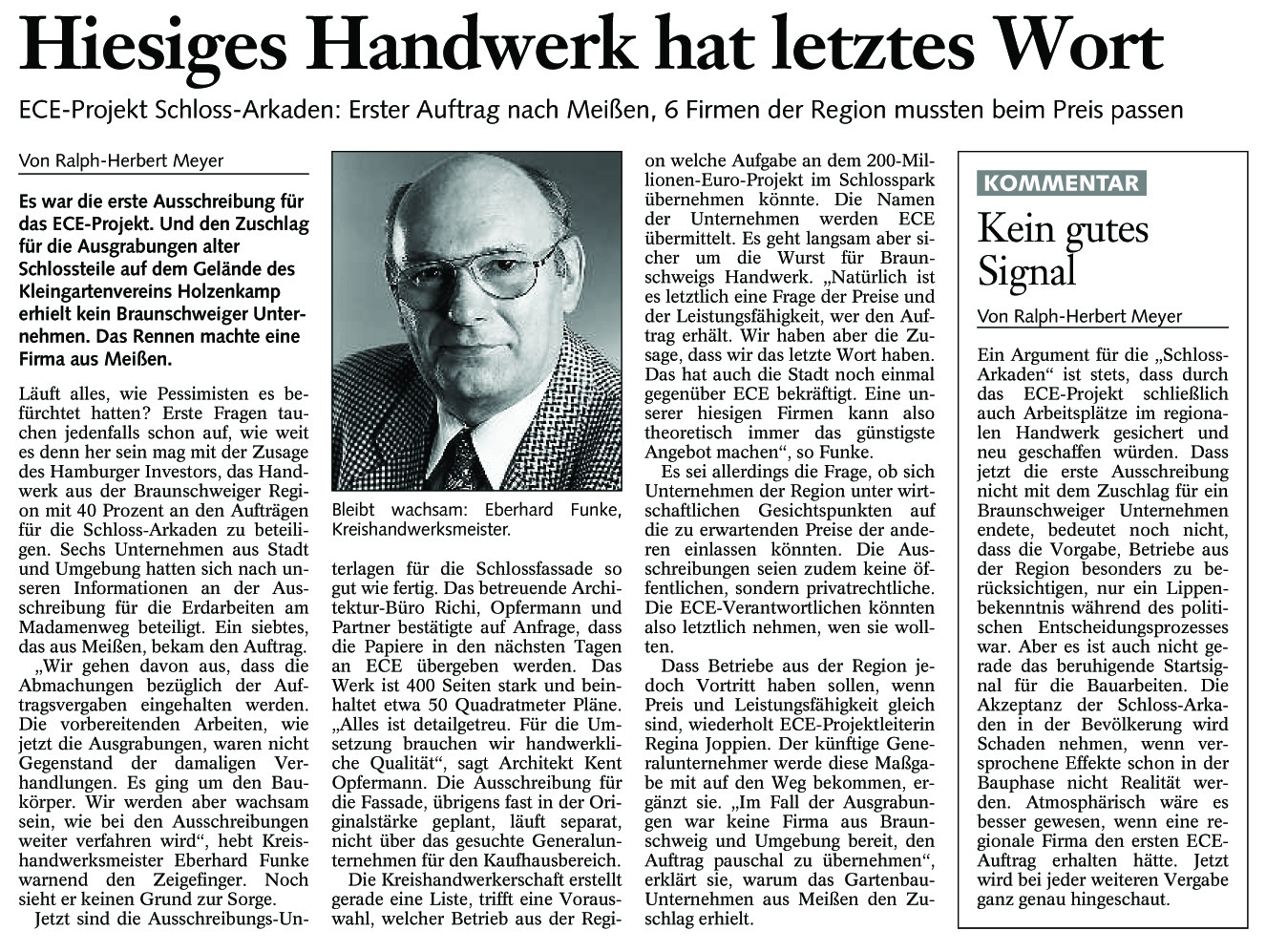 Hiesiges Handwerk hat letztes Wort Redaktioneller Beitrag vom 15. Apr. 2004 Originaldatei herunterladen …