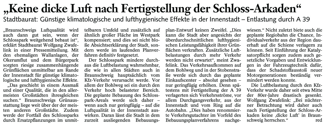 „Keine dicke Luft nach Fertigstellung der Schloss-Arkaden“ Redaktioneller Beitrag vom 27. Apr. 2004 Originaldatei herunterladen …