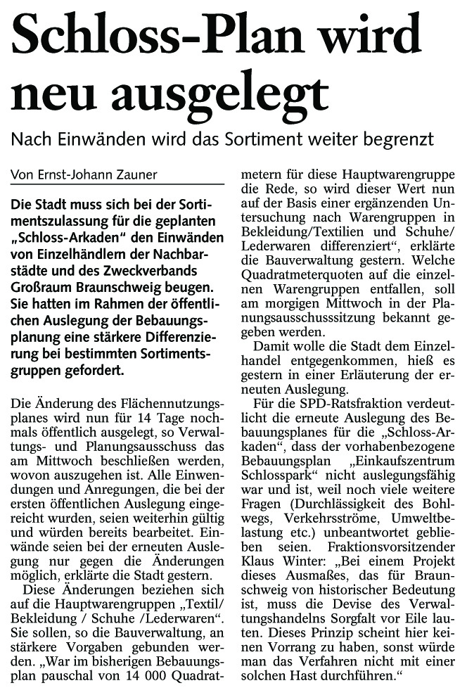 Schloss-Plan wird neu ausgelegt Redaktioneller Beitrag vom 18. Mai 2004 Originaldatei herunterladen …