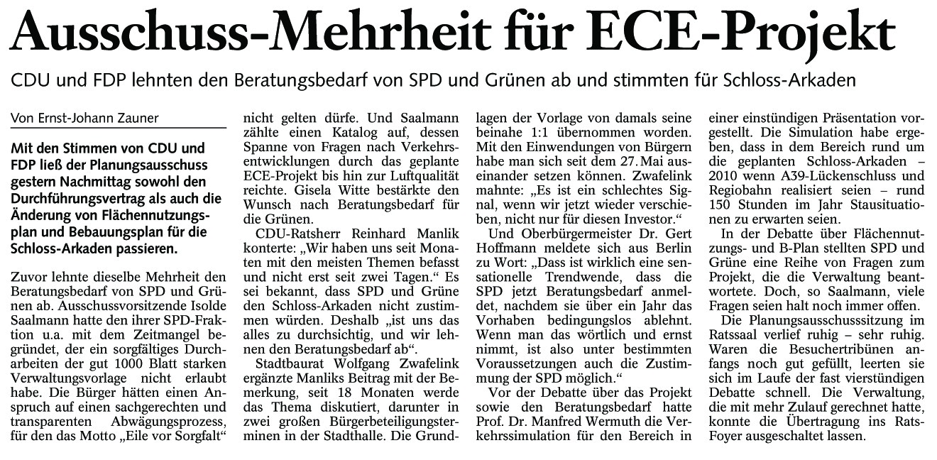 Ausschuss-Mehrheit für ECE-Projekt Redaktioneller Beitrag vom 03. Juli 2004 Originaldatei herunterladen …