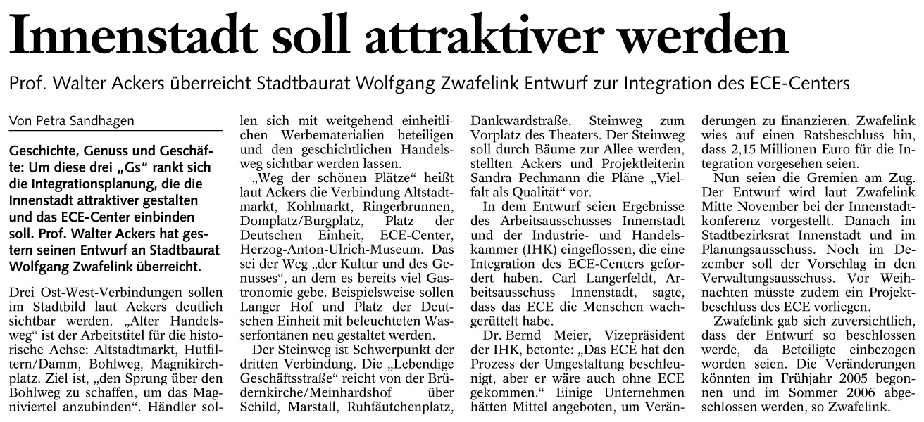 Innenstadt soll attraktiver werden Redaktioneller Beitrag vom 30. Okt. 2004 Originaldatei herunterladen …