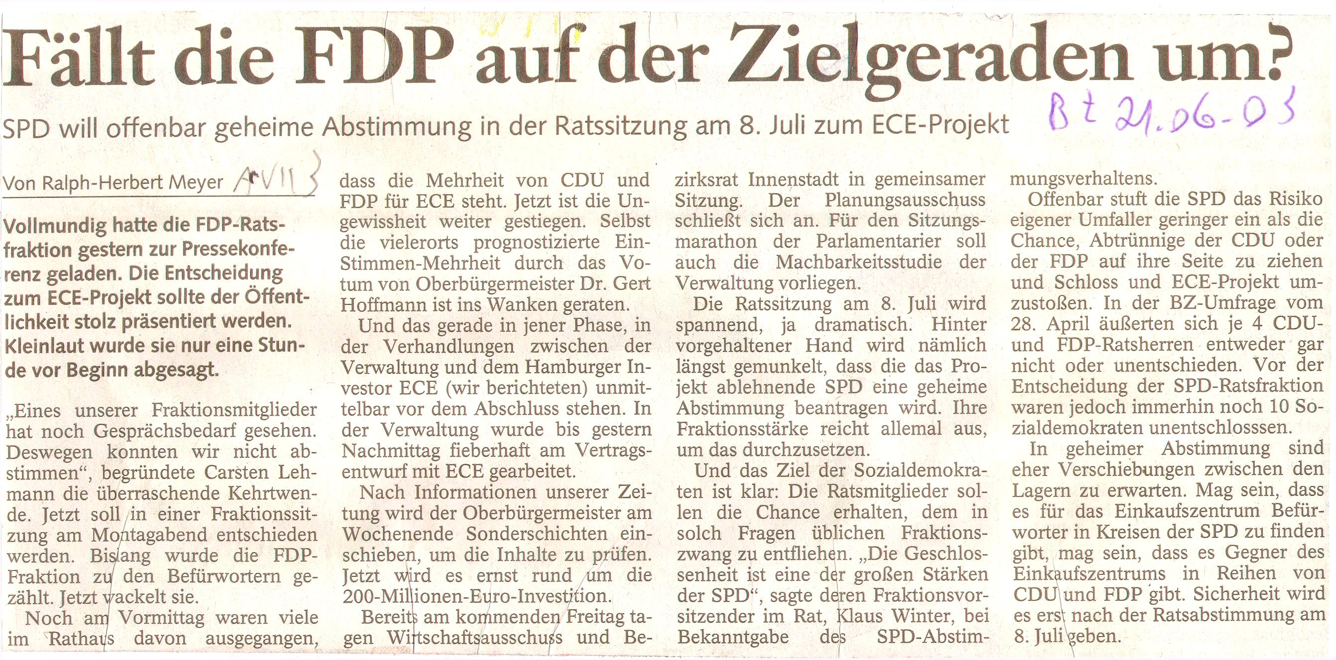Fällt die FDP auf der Zielgeraden um? Redaktioneller Beitrag vom 21. Juni 2003 Originaldatei herunterladen …
