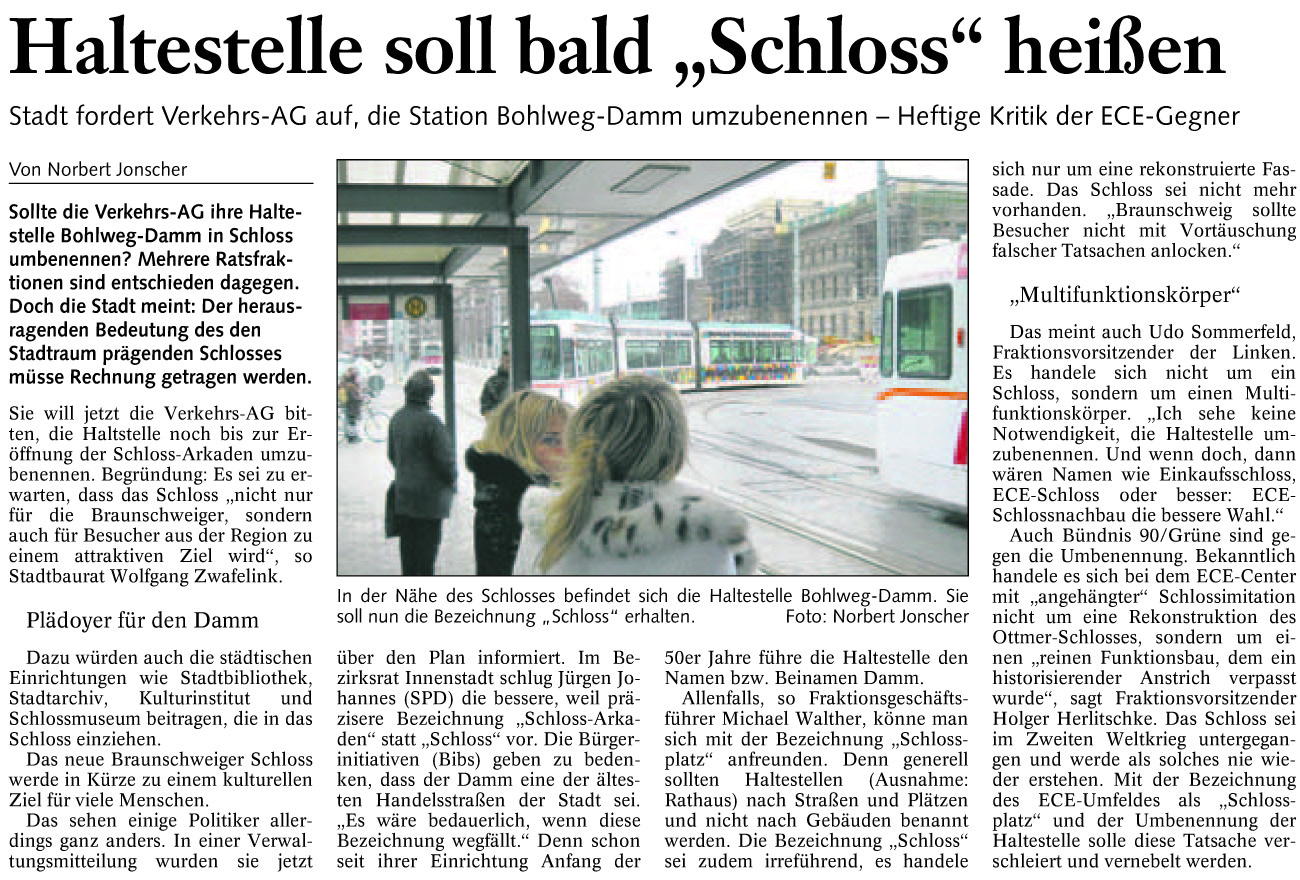 Haltestelle soll bald „Schloss“ heißen Redaktioneller Beitrag vom 06. Jan. 2007 Originaldatei herunterladen …