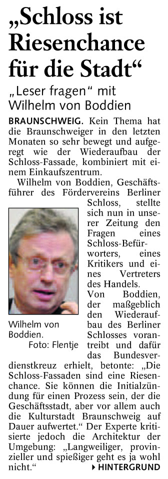 „Schloss ist eine Riesenchance für die Stadt“ Redaktioneller Beitrag vom 30. Jan. 2007 Originaldatei herunterladen …