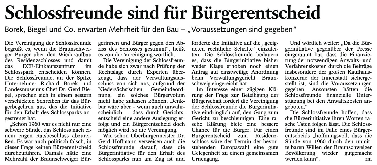 Schlossfreunde sind für Bürgerentscheid Redaktioneller Beitrag vom 19. Feb. 2004 Originaldatei herunterladen …