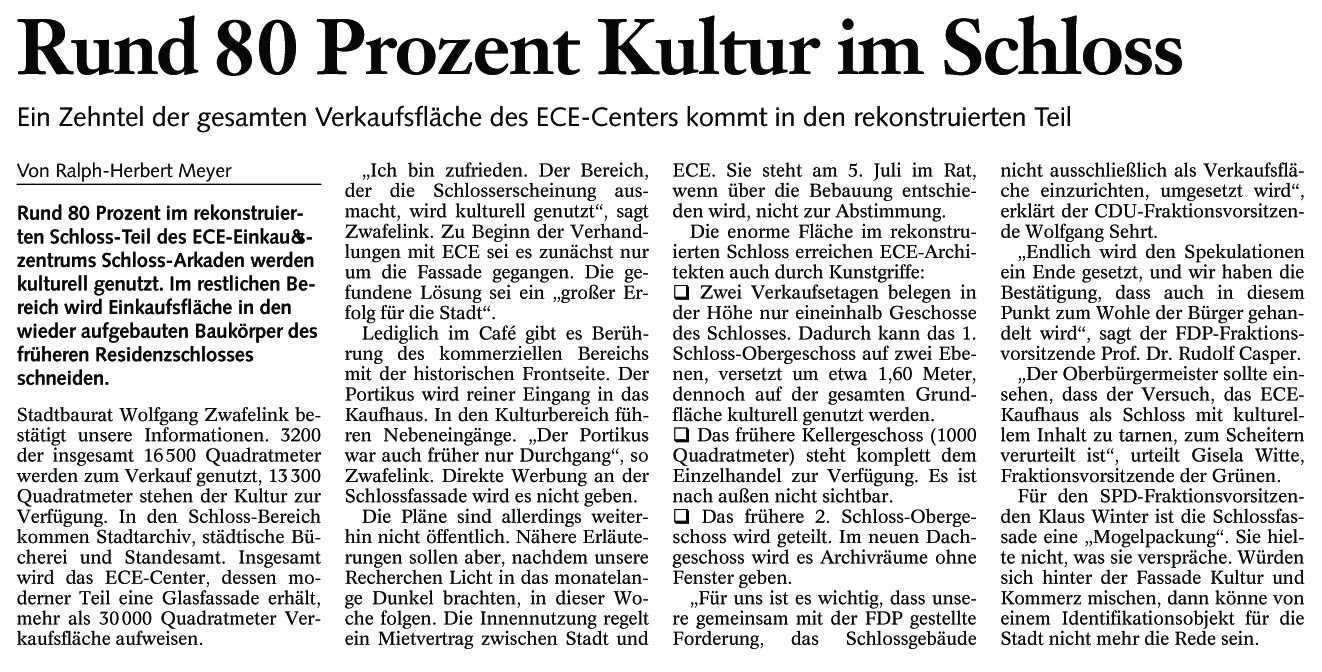 Rund 80 Prozent Kultur im Schloss Redaktioneller Beitrag vom 10. Juni 2004 Originaldatei herunterladen …