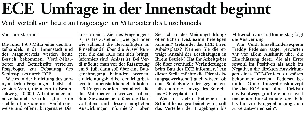 ECE-Umfrage in der Innenstadt beginnt Redaktioneller Beitrag vom 28. Juni 2004 Originaldatei herunterladen …