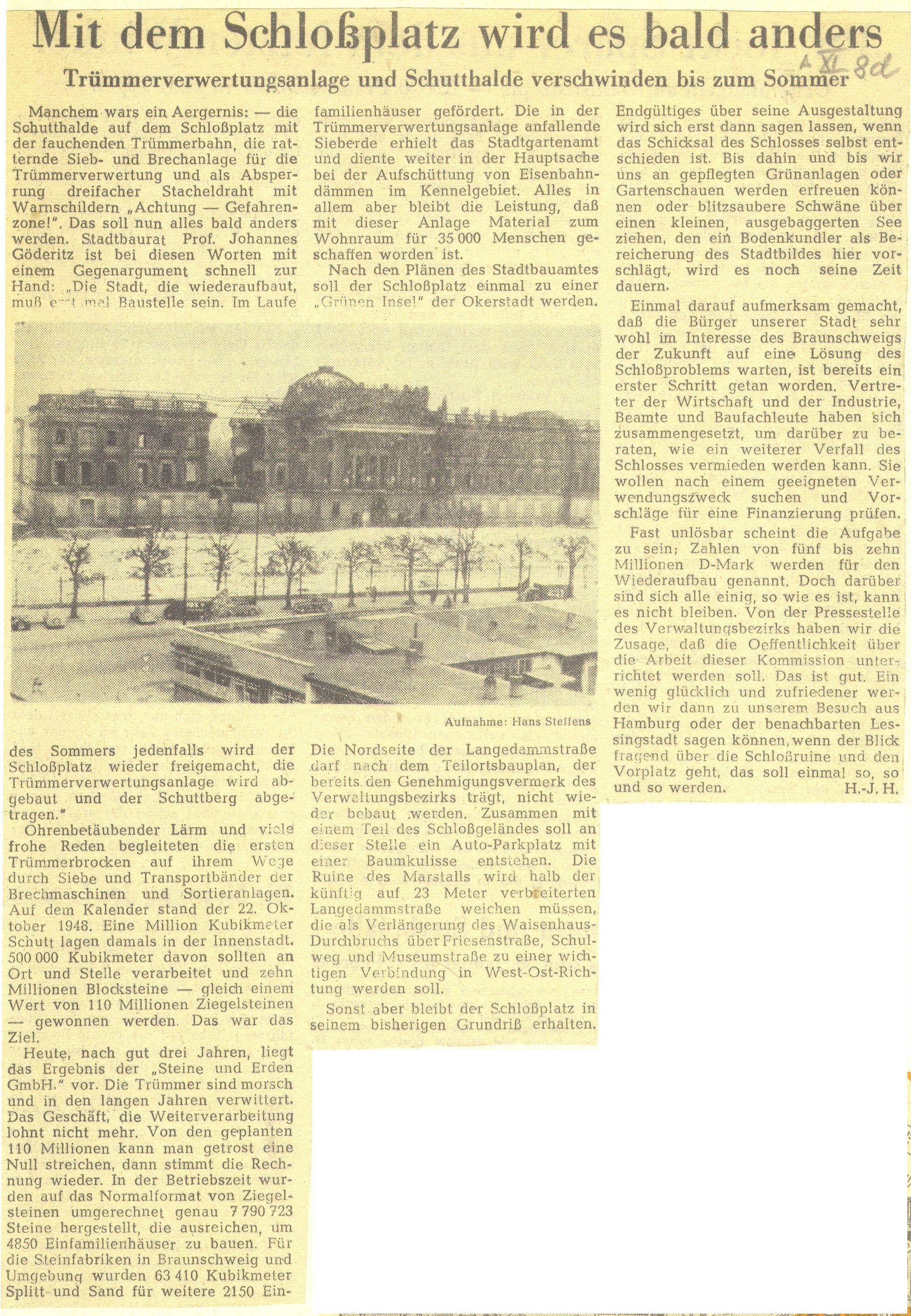 Mit dem Schlossplatz wird es bald anders Redaktioneller Beitrag vom 31. Dez. 1958 Originaldatei herunterladen …