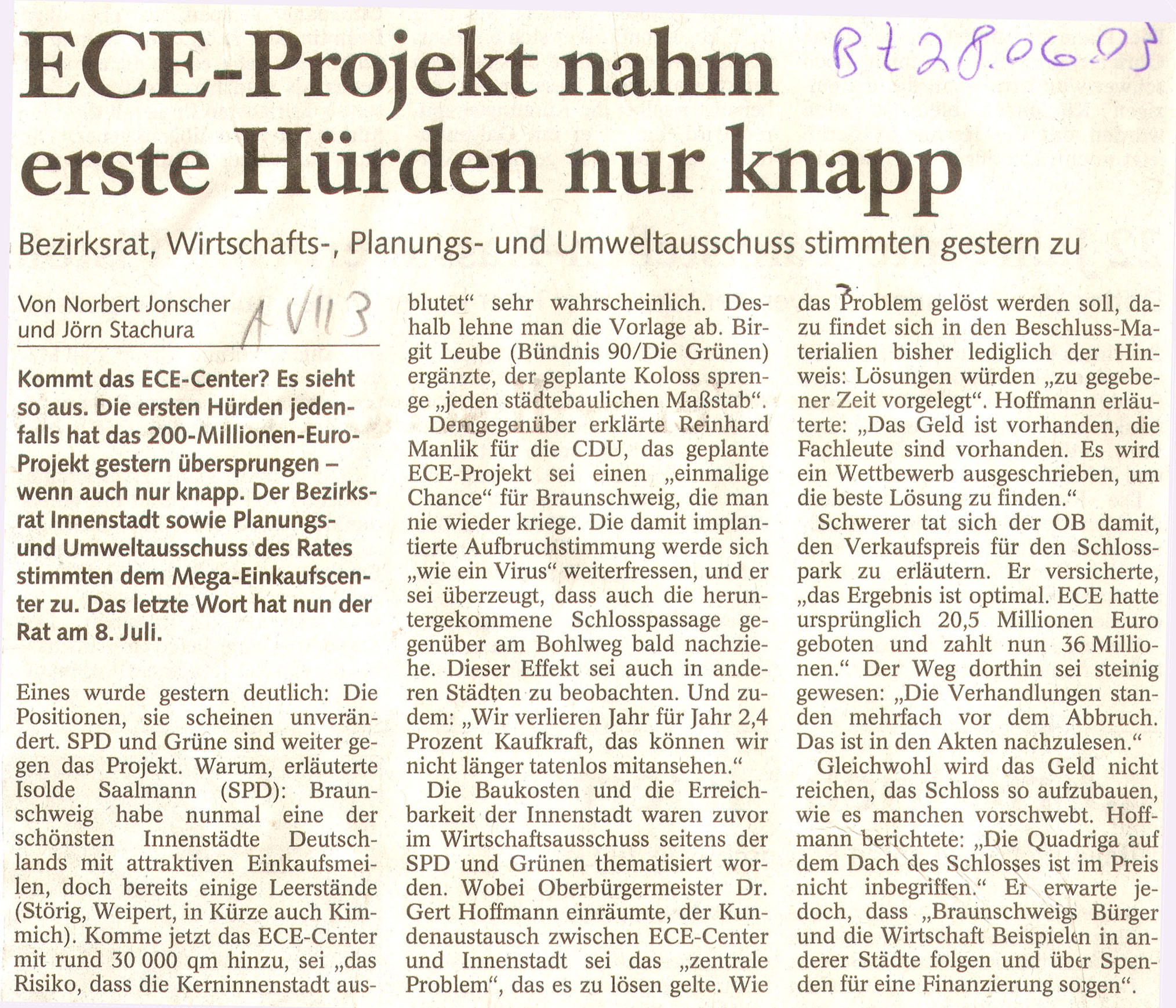 ECE-Projekt nahm erste Hürden nur knapp Redaktioneller Beitrag vom 28. Juni 2003 Originaldatei herunterladen …
