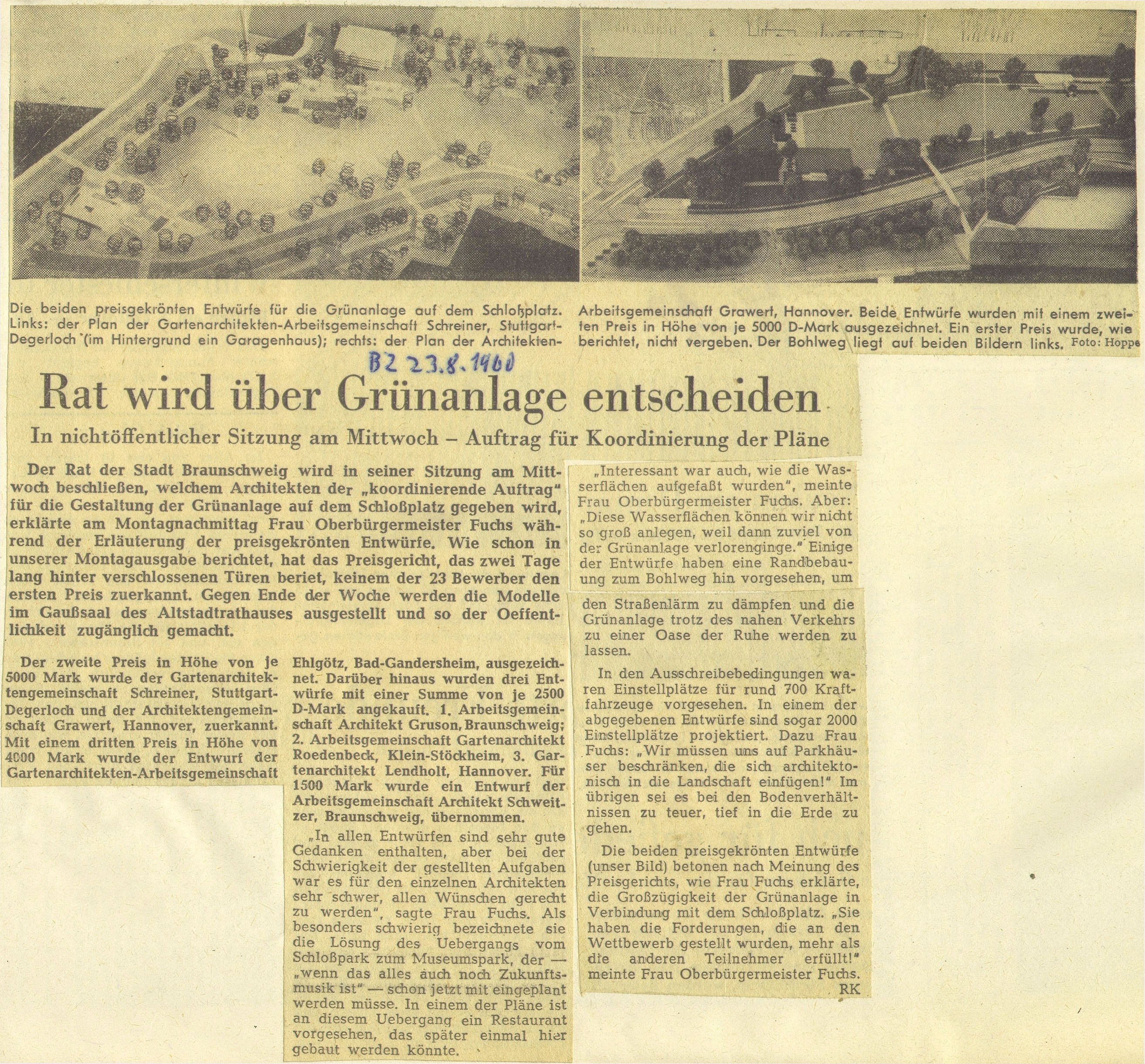 Rat wird über Grünanlage entscheiden Redaktioneller Beitrag vom 23. Aug. 1960 Originaldatei herunterladen …