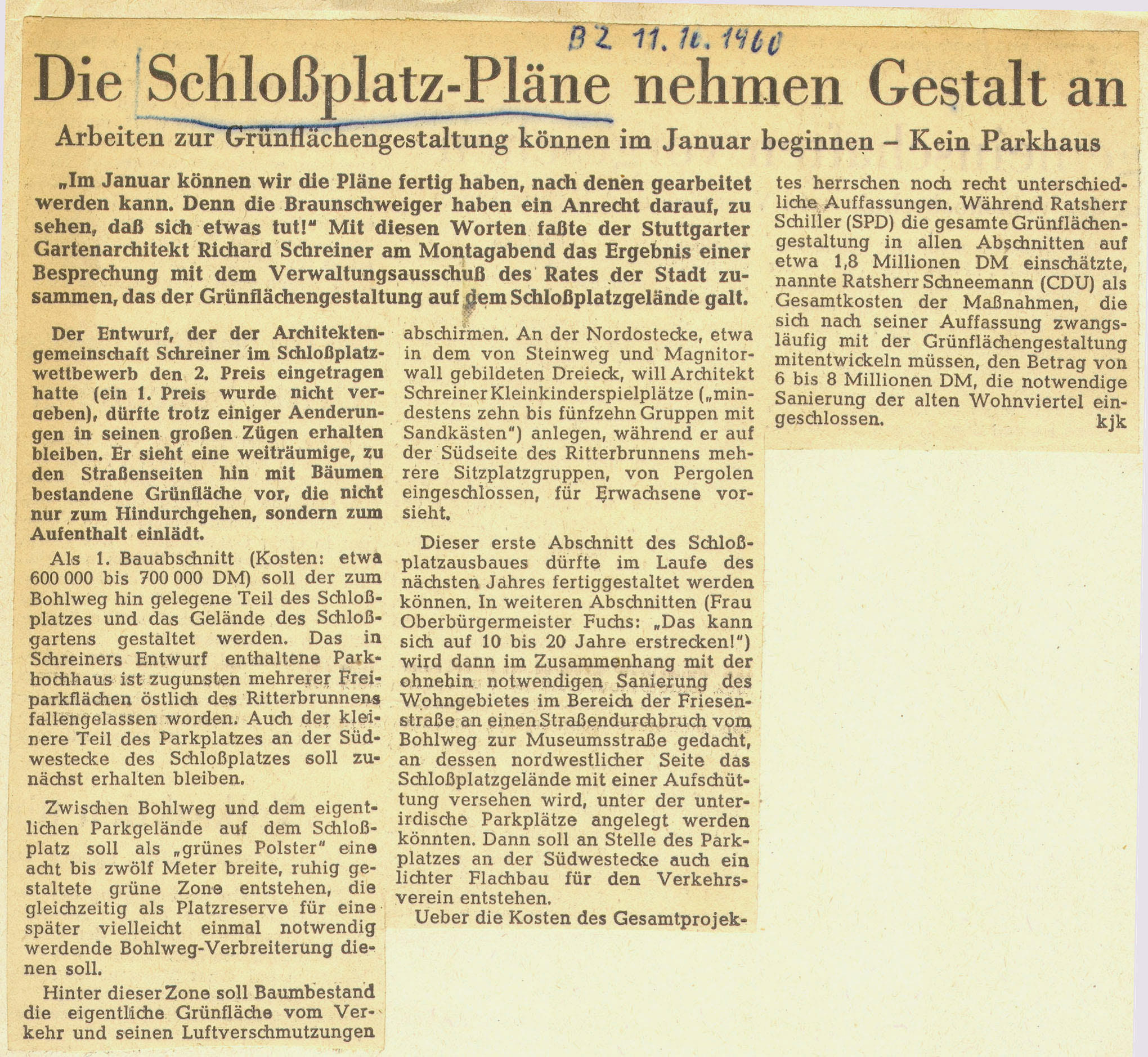 Die Schloßplatz-Pläne nehmen Gestalt an Redaktioneller Beitrag vom 11. Okt. 1960 Originaldatei herunterladen …