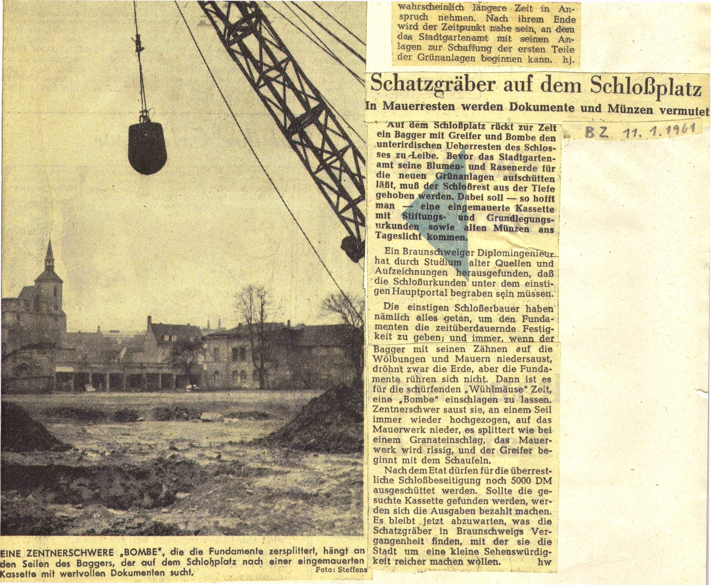 Schatzgräber auf dem Schlossplatz Redaktioneller Beitrag vom 11. Jan. 1961 Originaldatei herunterladen …