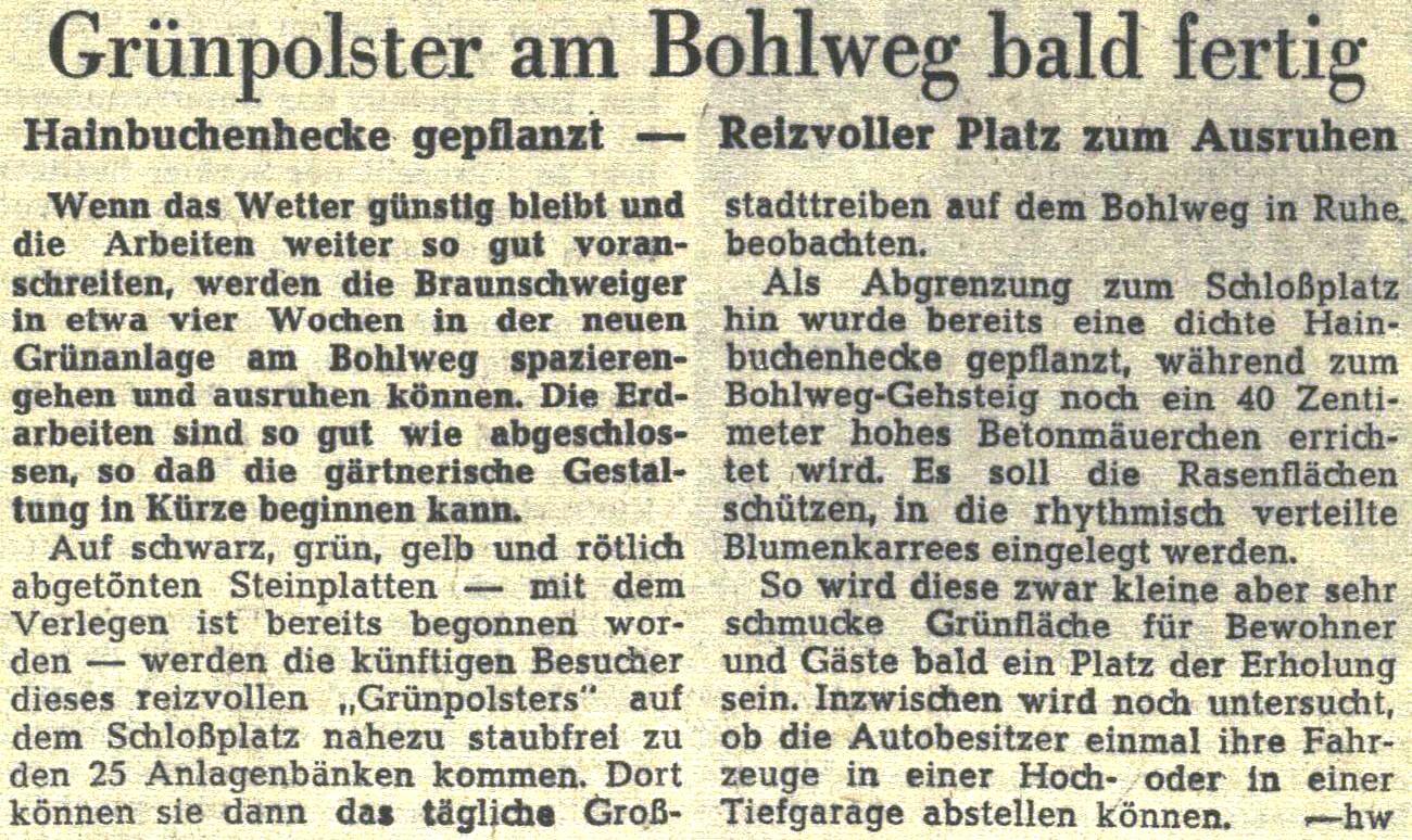 Grünpolster am Bohlweg bald fertig Redaktioneller Beitrag vom 13. Apr. 1961 Originaldatei herunterladen …