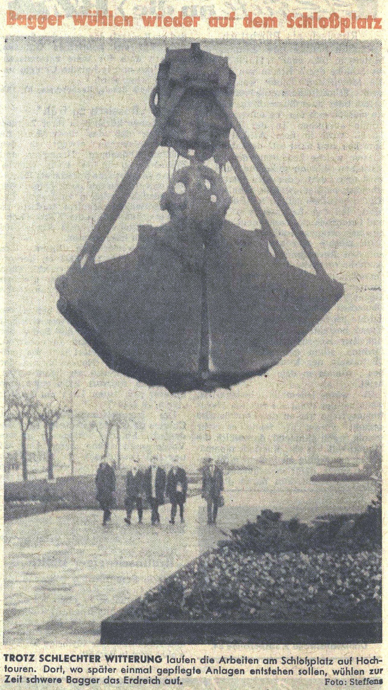 Bagger wühlen wieder auf dem Schlossplatz Redaktioneller Beitrag vom 28. Nov. 1962 Originaldatei herunterladen …