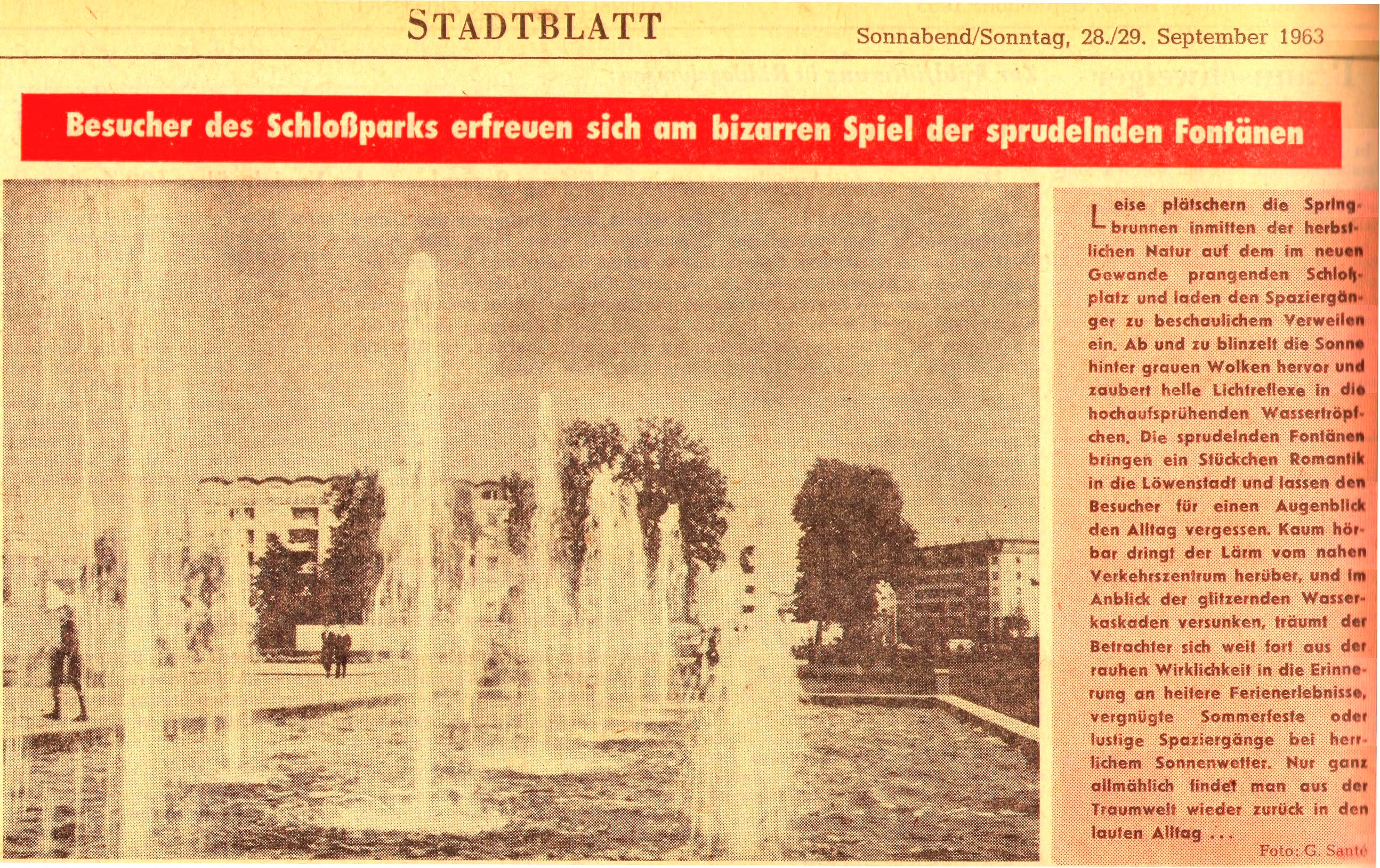 Besucher des Schloßparks erfreuen sich am bizarren Spiel der sprudelnden Fontänen Redaktioneller Beitrag vom 28. Sept. 1963 Originaldatei herunterladen …
