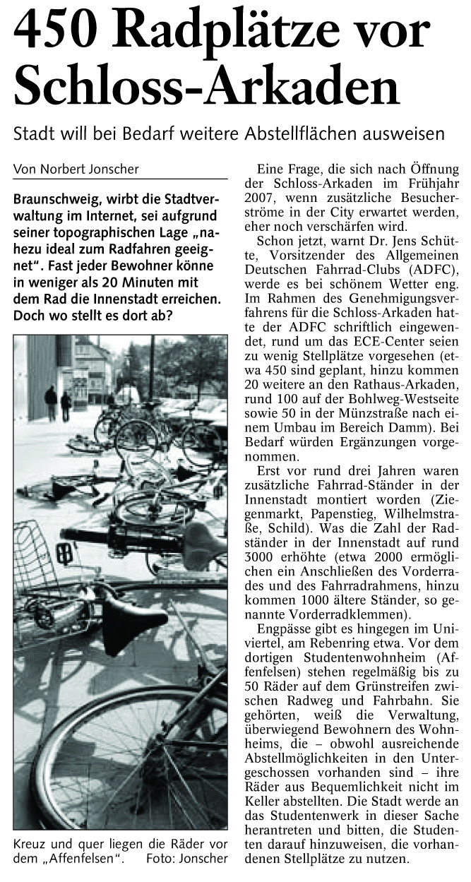450 Radplätze vor Schloss-Arkaden Redaktioneller Beitrag vom 02. Nov. 2005 Originaldatei herunterladen …