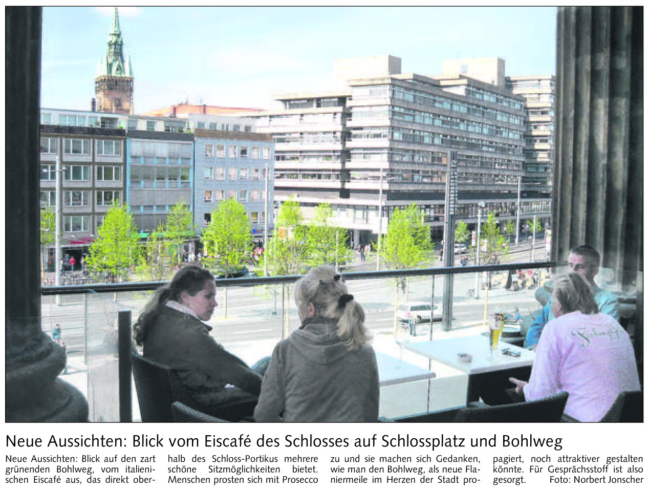 Neue Aussichten: Blick vom Eiscafé des Schlosses auf Schlossplatz und Bohlweg Bild vom 24. Apr. 2007 Originaldatei herunterladen …