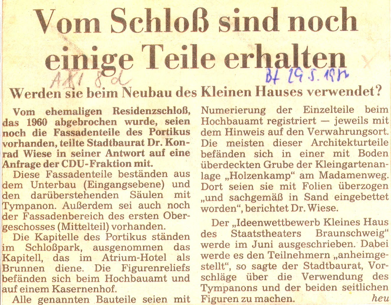 Vom Schloss sind noch einige Teile erhalten Redaktioneller Beitrag vom 29. Mai 1986 Originaldatei herunterladen …