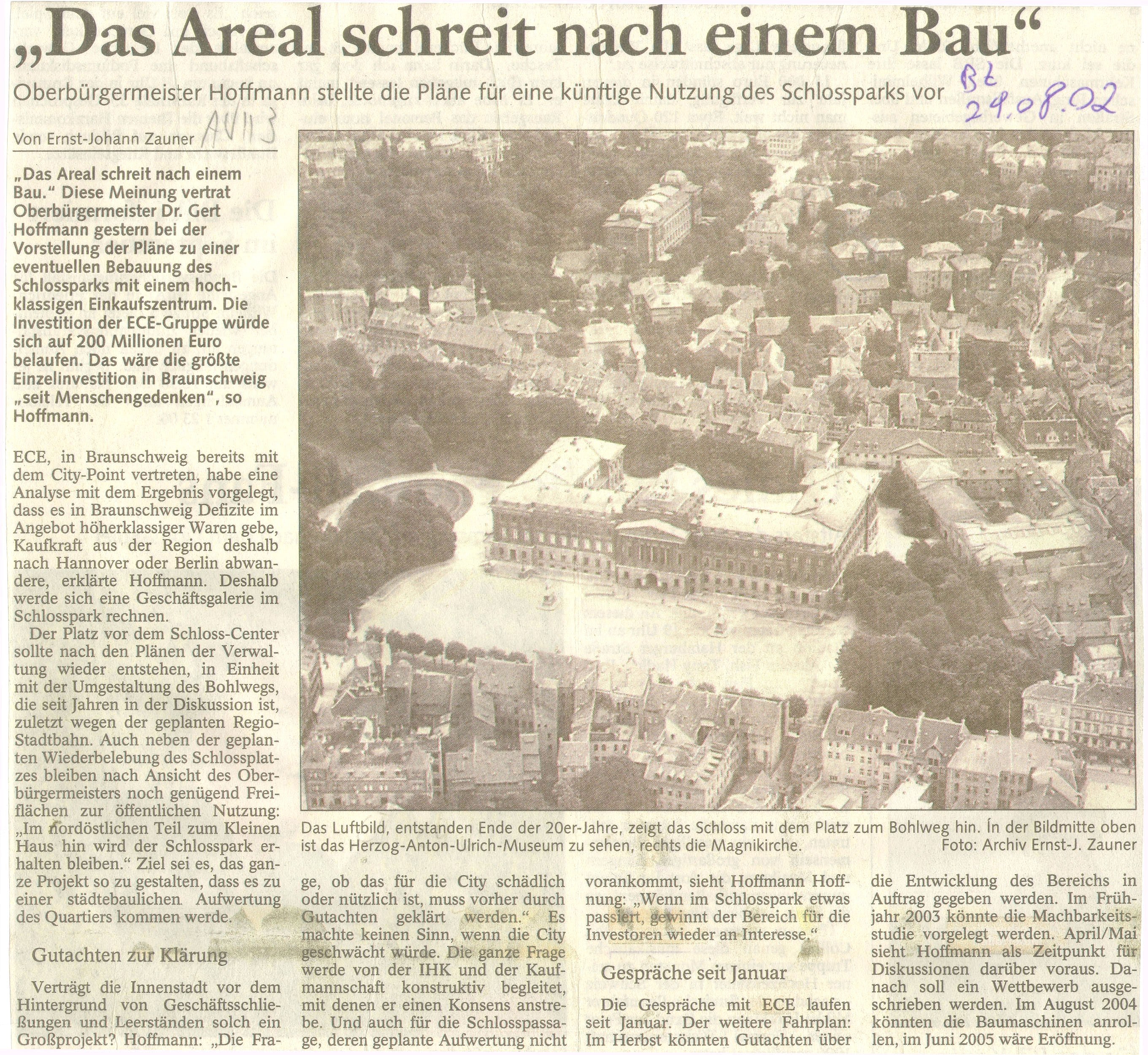 „Das Areal schreit nach einem Bau“ Redaktioneller Beitrag vom 29. Aug. 2002 Originaldatei herunterladen …