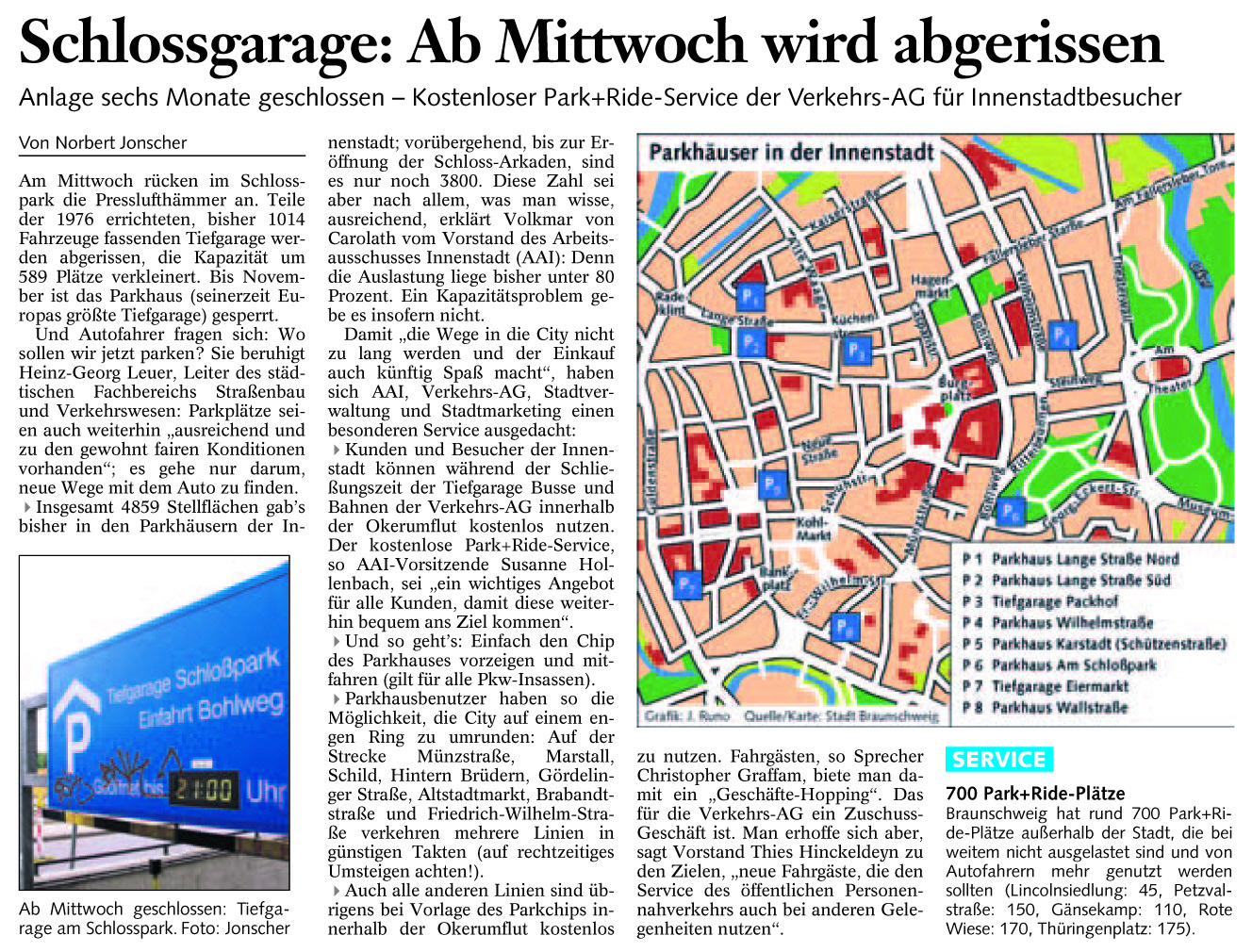 Schlossgarage: Ab Mittwoch wird abgerissen Redaktioneller Beitrag vom 24. Mai 2005 Originaldatei herunterladen …