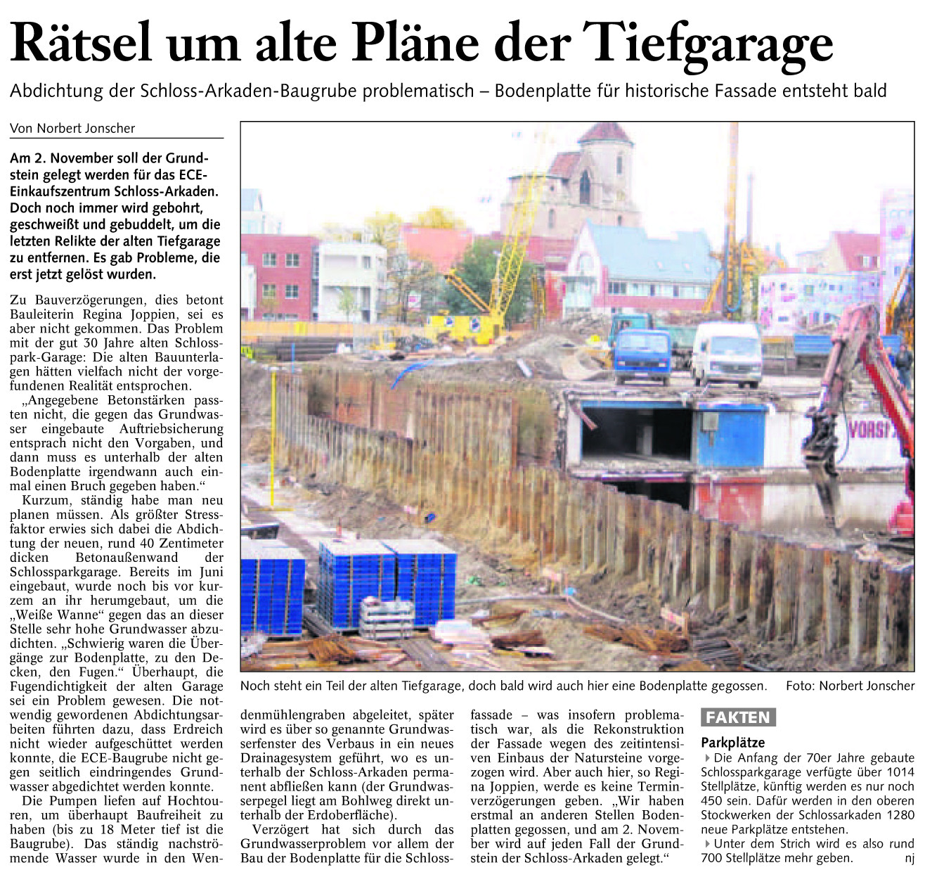 Rätsel um alte Pläne der Tiefgarage Redaktioneller Beitrag vom 27. Okt. 2005 Originaldatei herunterladen …
