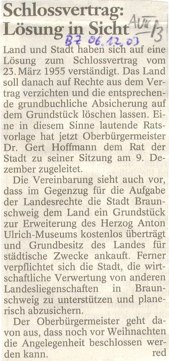 Schlossvertrag: Lösung in Sicht Redaktioneller Beitrag vom 06. Dez. 2003 Originaldatei herunterladen …