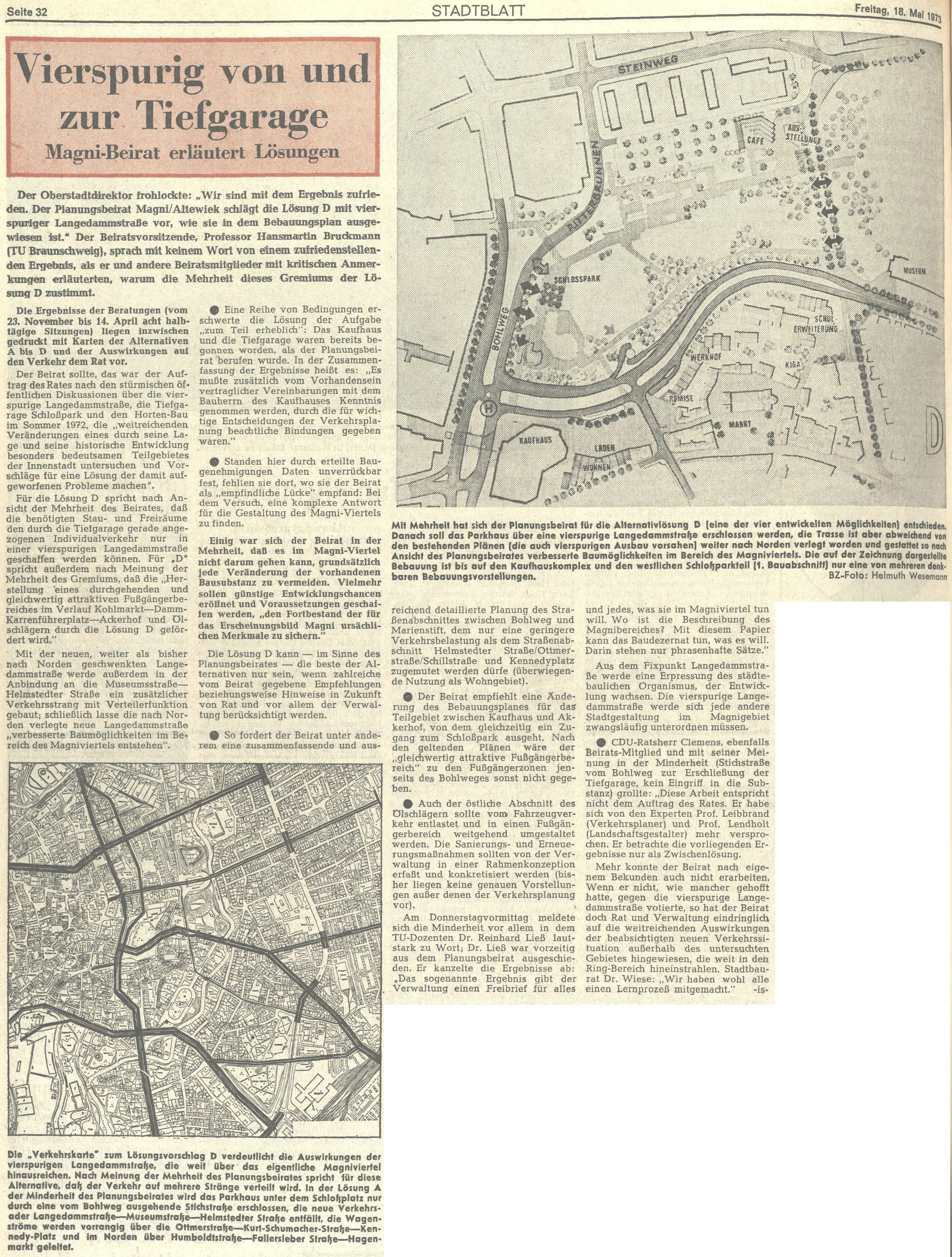 Vierspurig von und zur Tiefgarage Redaktioneller Beitrag vom 18. Mai 1973 Originaldatei herunterladen …