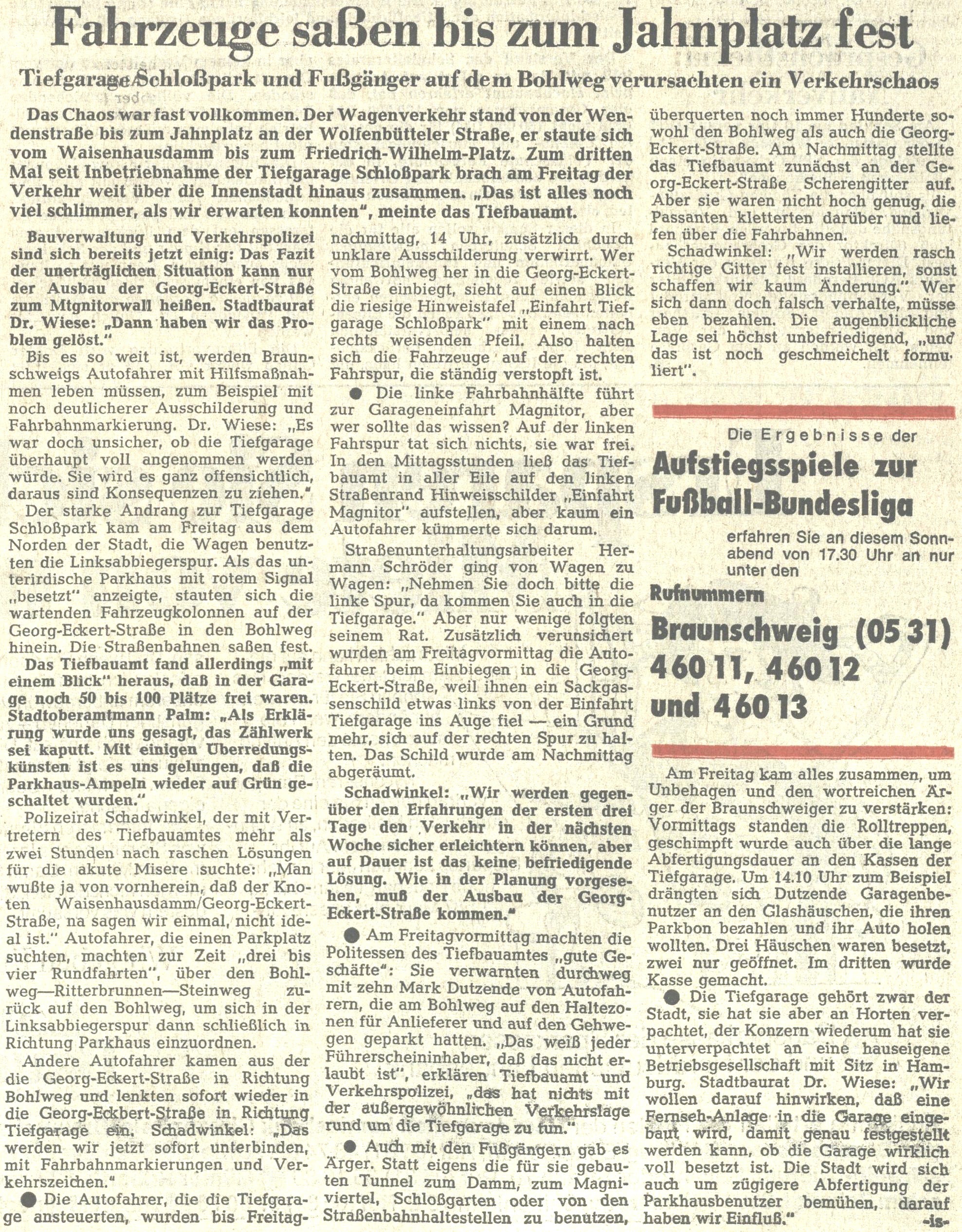 Fahrzeuge saßen bis zum Jahnplatz fest Redaktioneller Beitrag vom 25. Mai 1974 Originaldatei herunterladen …