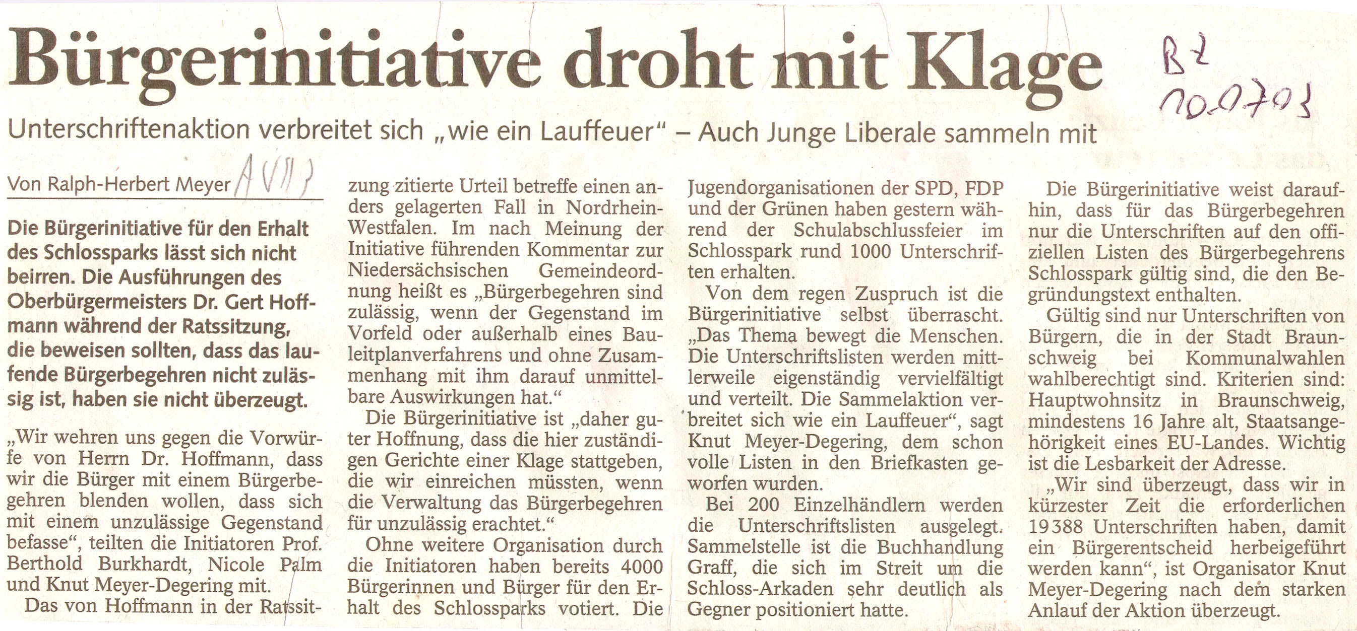 Bürgerinitiative droht mit Klage Redaktioneller Beitrag vom 10. Juli 2003 Originaldatei herunterladen …