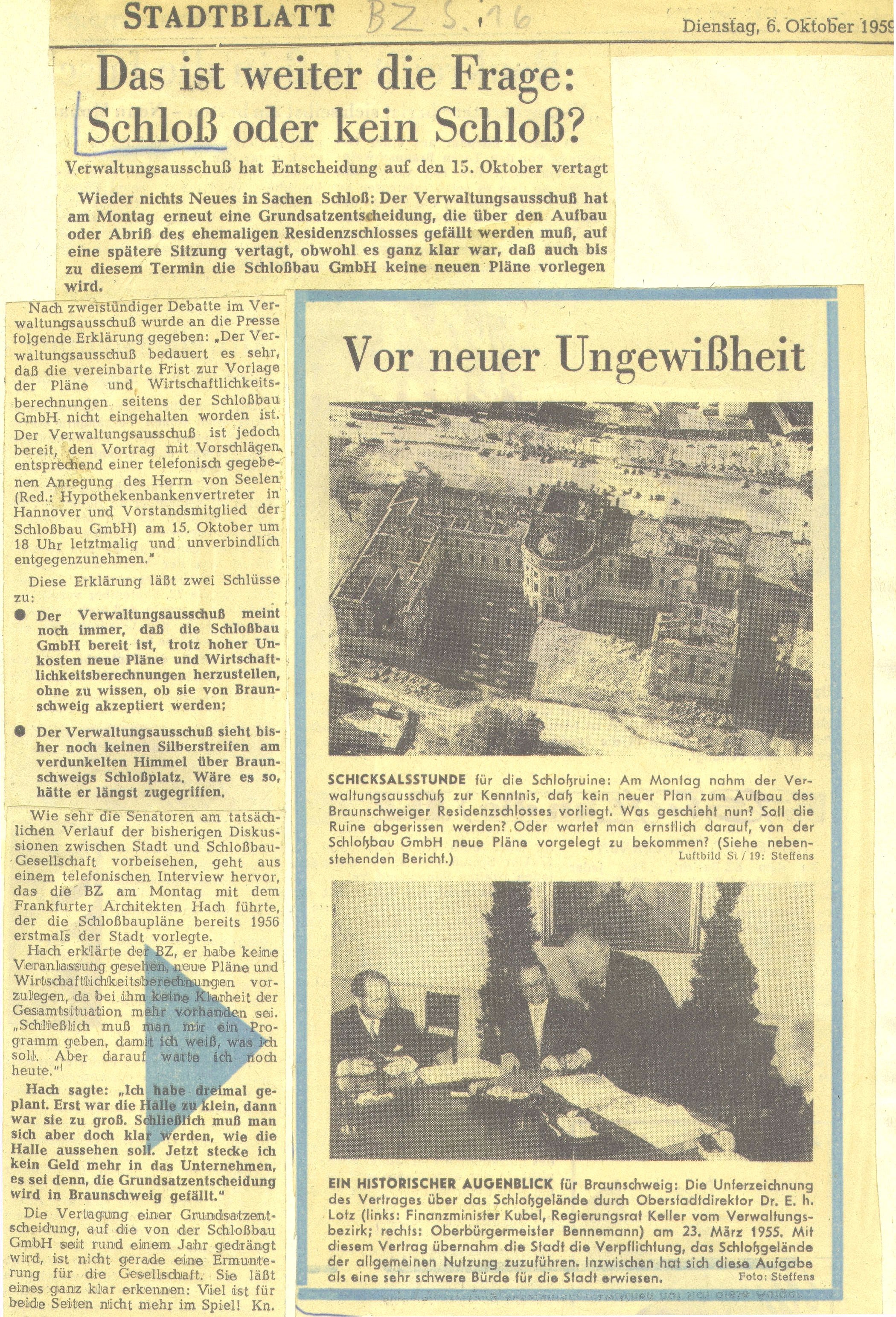 Das ist weiter die Frage: Schloss oder kein Schloss? Redaktioneller Beitrag vom 06. Okt. 1959 Originaldatei herunterladen …