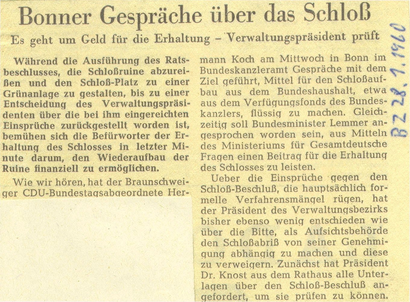 Bonner Gespräche über das Schloss Redaktioneller Beitrag vom 28. Jan. 1960 Originaldatei herunterladen …