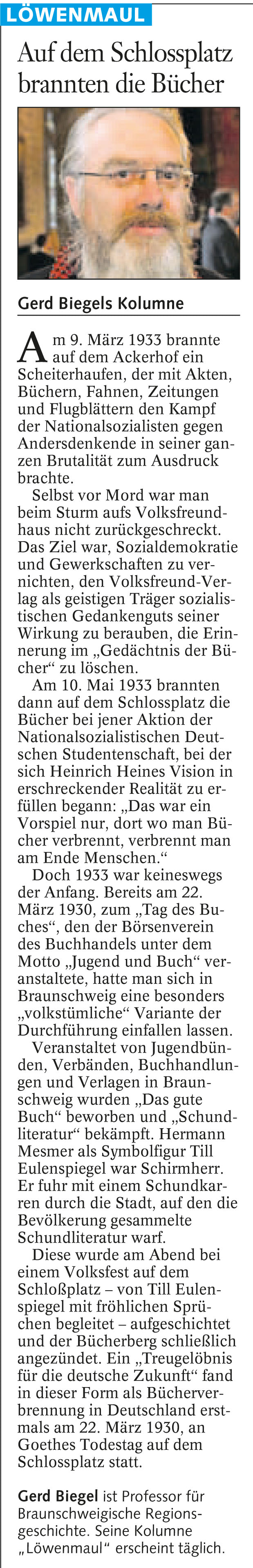 Auf dem Schlossplatz brannten die Bücher