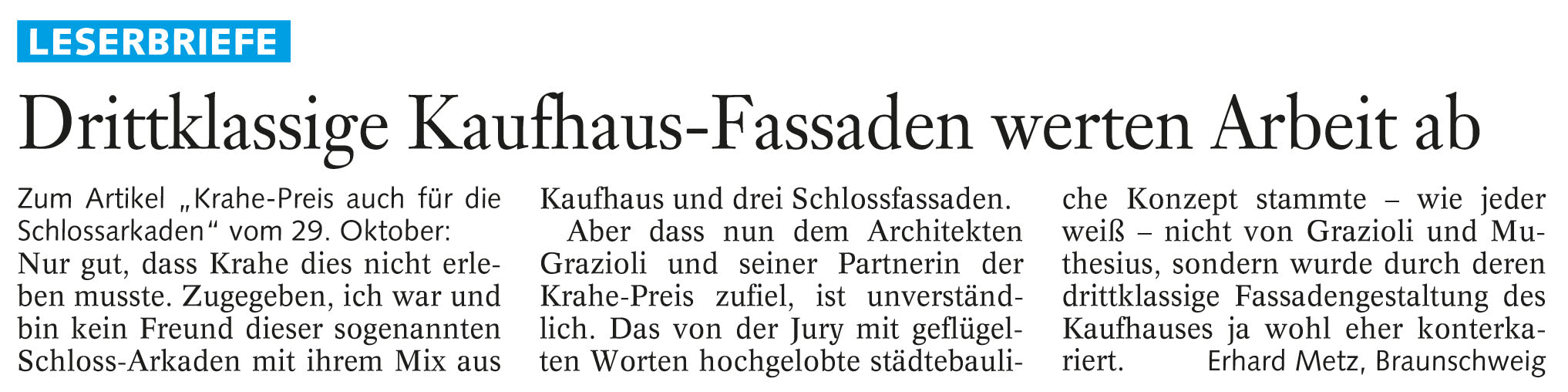 Drittklassige Kaufhaus-Fassaden werten Arbeit ab Brief vom 06. Nov. 2009 Originaldatei herunterladen …