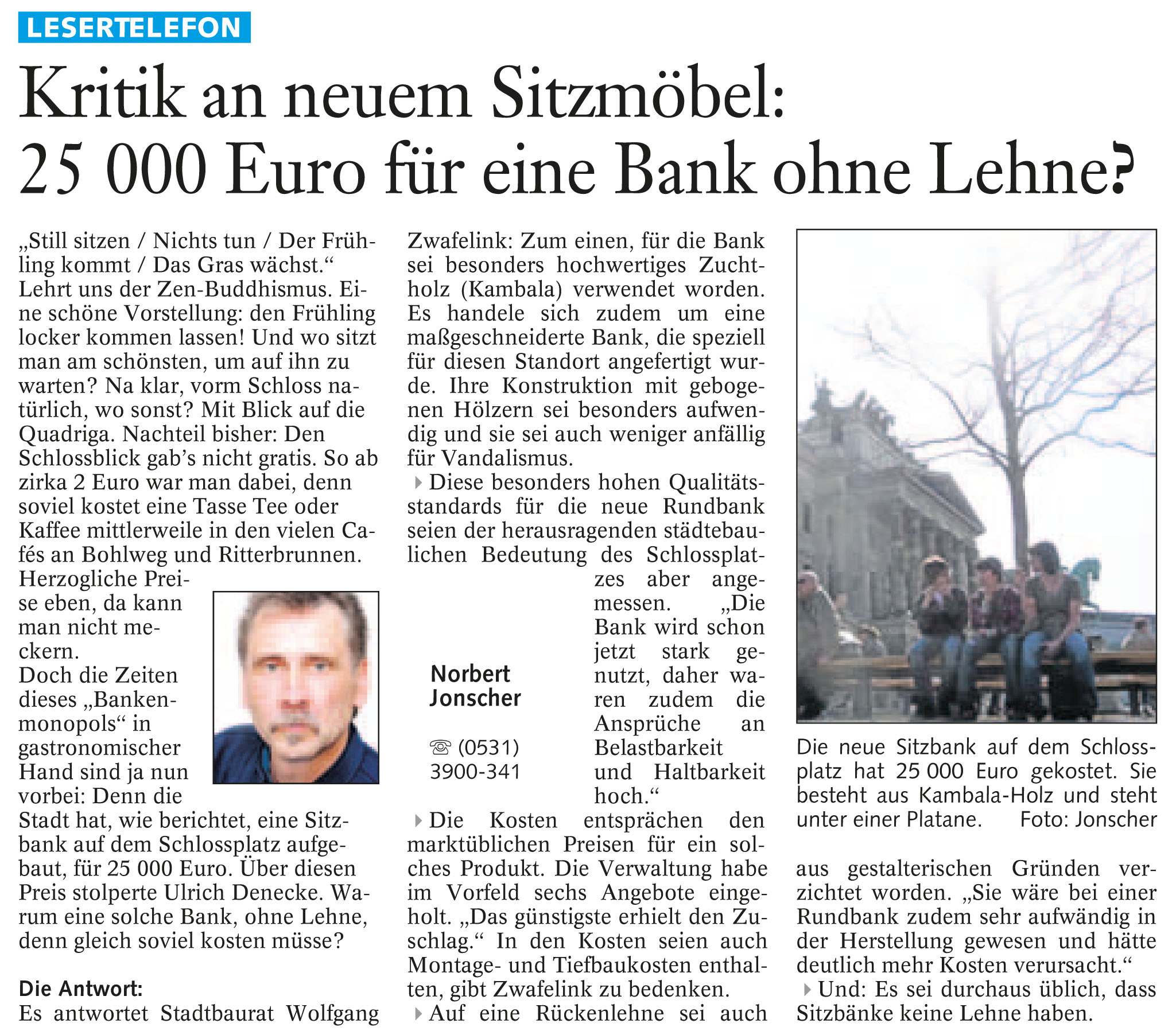 Kritik an neuem Sitzmöbel: 25000 Euro für eine Bank ohne Lehne vom 27. März 2010 Originaldatei herunterladen …