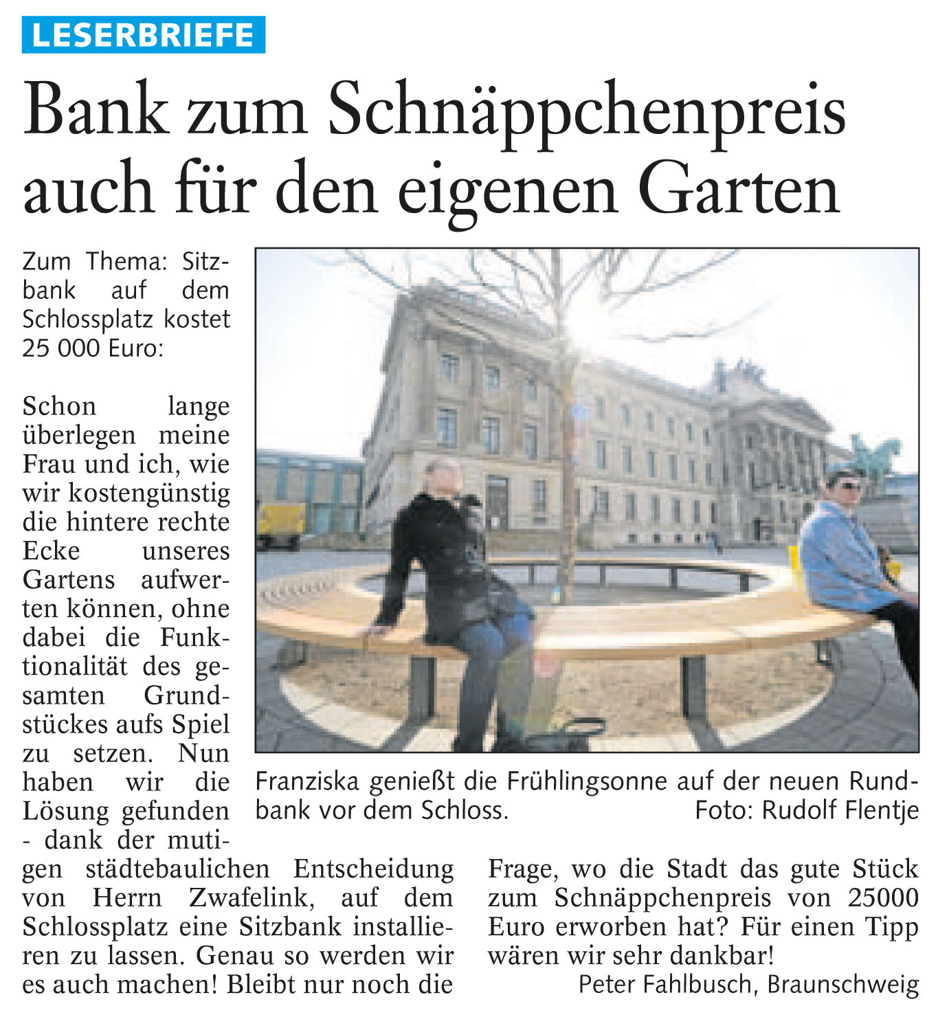 Bank zum Schnäppchenpreis auch für den eigenen Garten Brief vom 29. März 2010 Originaldatei herunterladen …