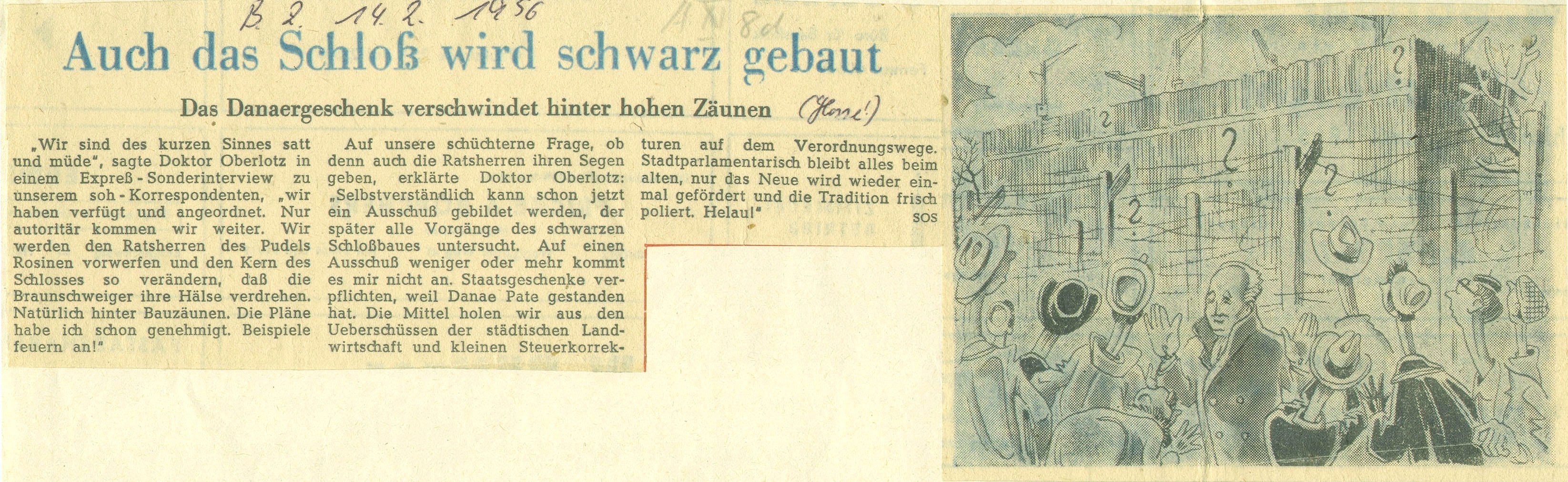 Auch das Schloss wird schwarz gebaut Redaktioneller Beitrag vom 14. Feb. 1956 Originaldatei herunterladen …