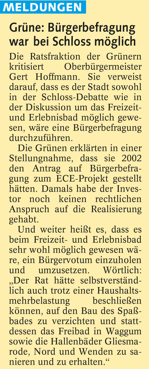Grüne: Bürgerbefragung war bei Schloss möglich