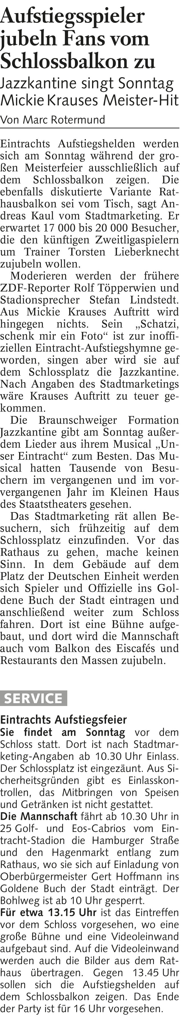 Aufstiegsspieler jubeln Fans vom Schlossbalkon zu